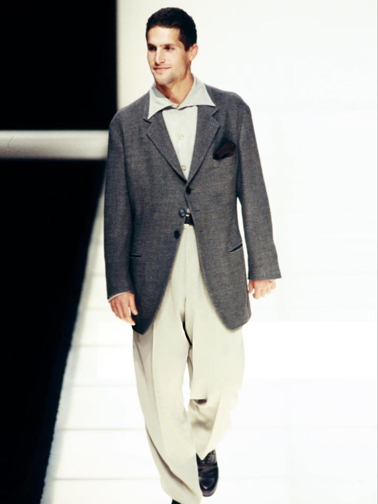 这种松弛、优雅、充满力量感的设计,奠定了阿玛尼的时尚帝国地位。即便过了三十年,这种审美依旧高级、耐看,并且正在悄然回潮。真正的经典,就是永不过时。