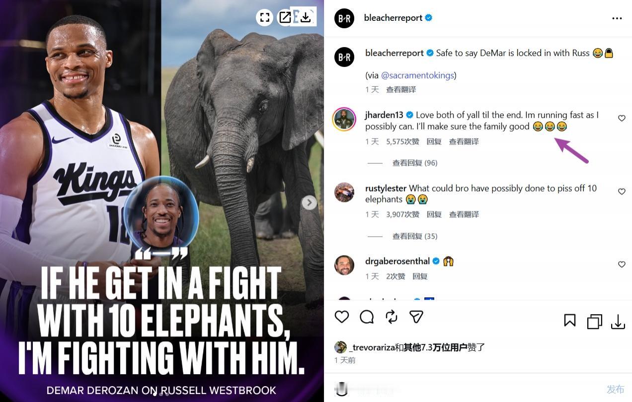 哈登、威少、德罗赞,联盟中3个09届的巨星、老友在网上互相调侃起来: