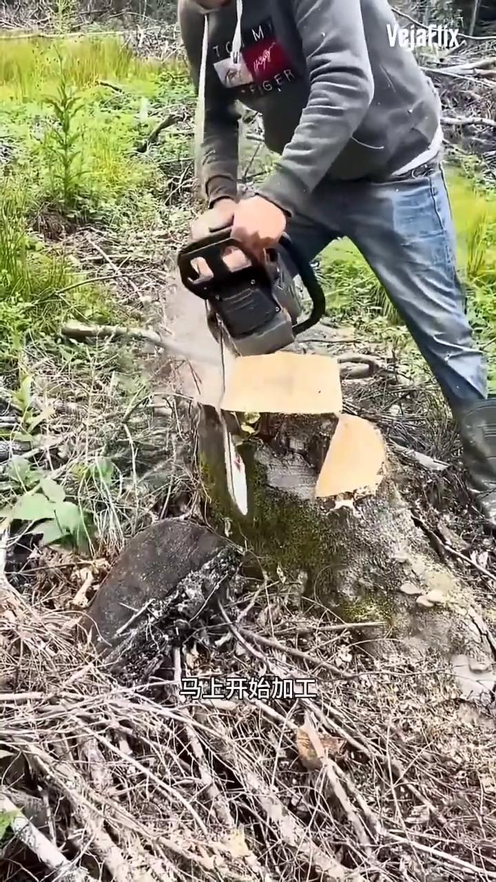 ·四周没用的全部锯掉,男子又把刚才的动作重复了一遍。