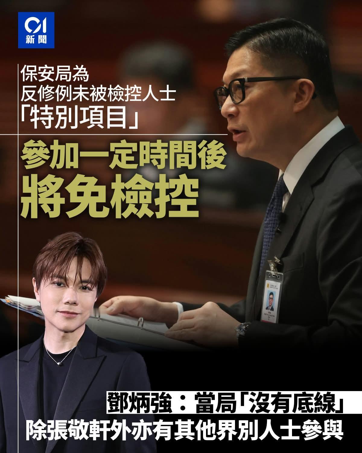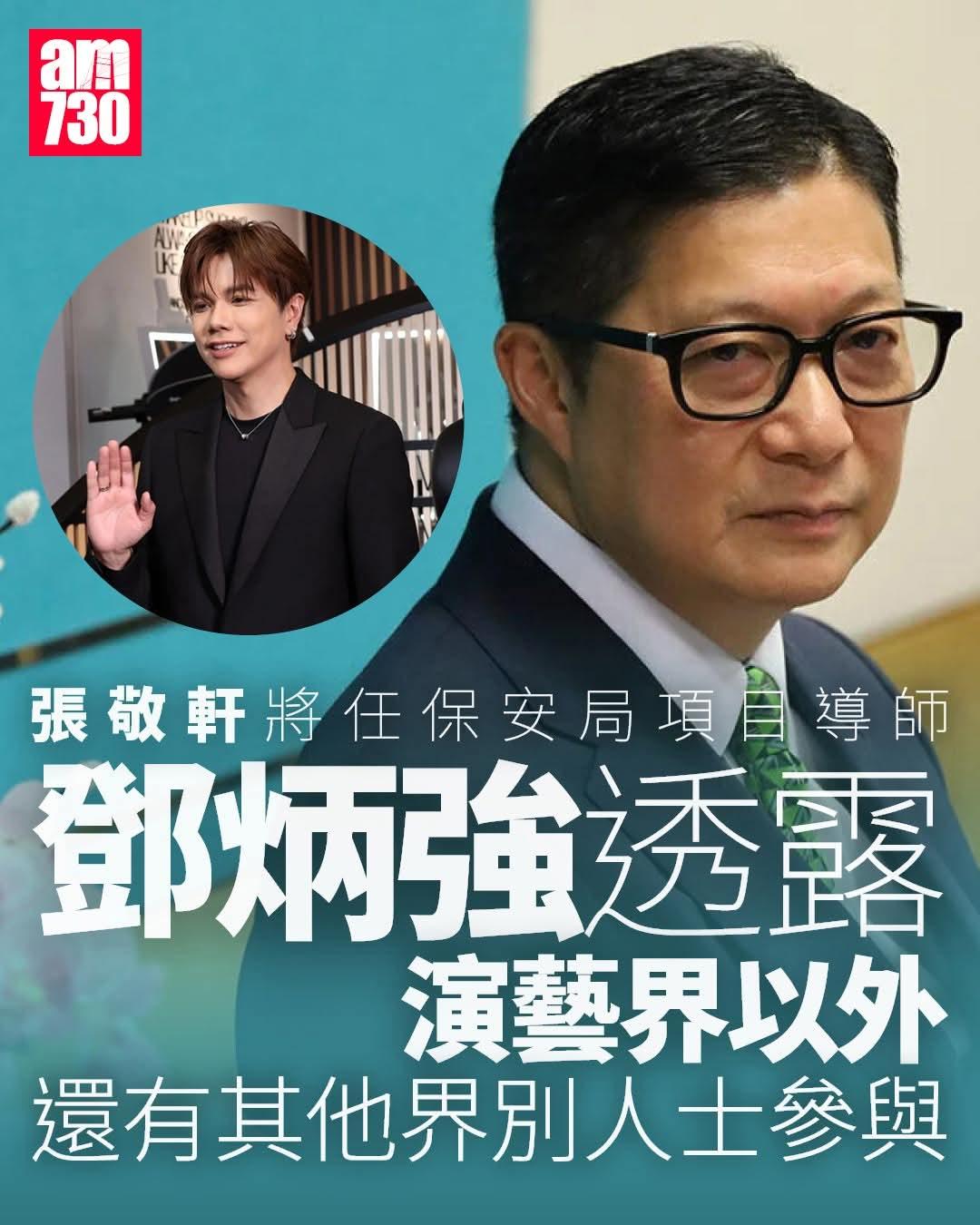 歌手张敬轩张敬轩在访问中透露,自己是主动透过公司向香港保安局表达担任保安局「正向引导」项目导师的意愿,并为昔日言论作品致歉,引起社会热烈讨论。他所属公司英皇娱乐今天(15日)表示,张敬轩是透过公司申请,「义不容辞」做保安局导师,未来不排除出动更多艺人做类似岗位。保安局局长邓炳强早前透露,除了张敬轩等演艺界人士外,亦有其他界别人士做「正向引导」项目导师。