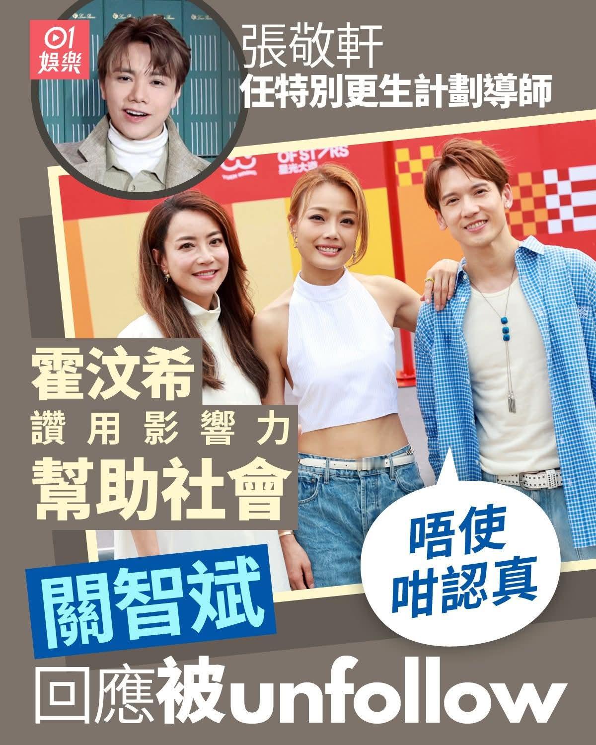 英皇娱乐集团营运总裁霍汶希表示:佢一直都好关心年轻人,又会参加教育局、劳工处,帮啲青少年搵工,佢一直都参加紧呢啲活动。既然上天畀咁大影响力你哋,你哋义务就係用你嘅影响力去影响别人,令到所有年轻人更加好。