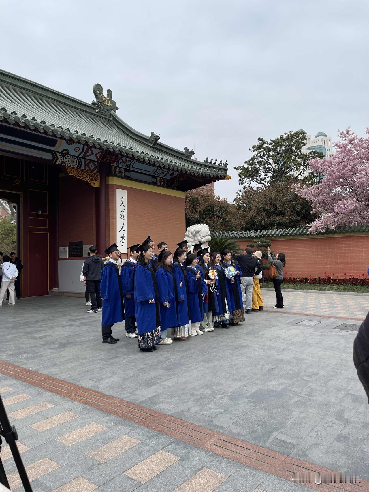 蓝袍加身,应当是硕士毕业了。