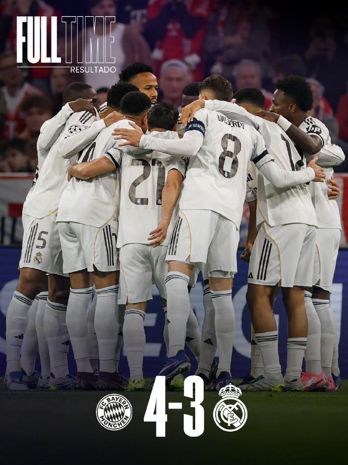 拜仁完成了对皇马“双杀”,以总比分6-4淘汰皇马。小将居莱尔开场吊射+任意球破门,表现如此优秀也救不了皇马,还整成了悲情英雄。本赛季皇马很可能“四大皆空”。欧冠半决赛对阵:拜仁vs巴黎,阿森纳vs马竞。