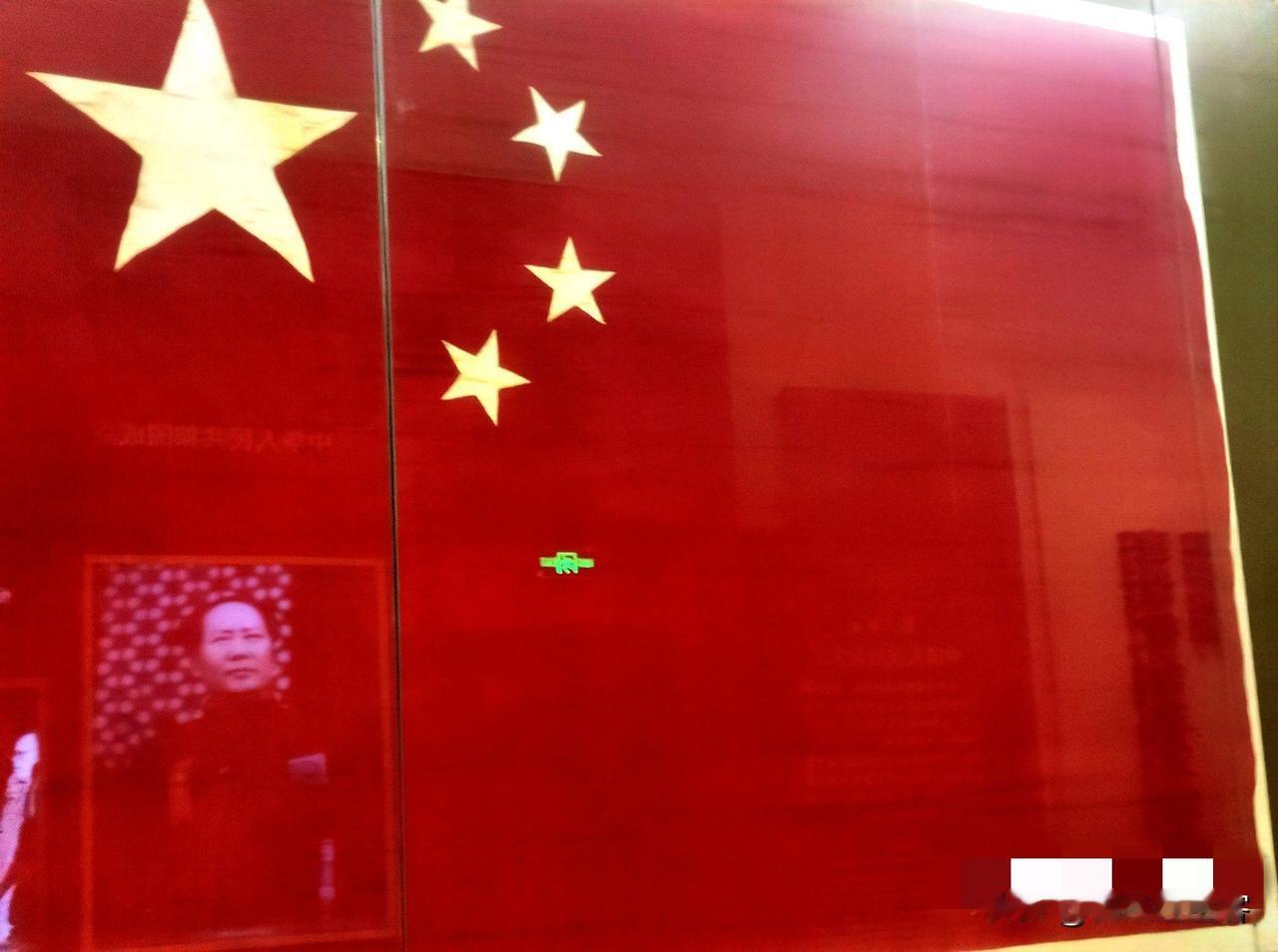 在北京博物馆,当他的身影被国旗前的玻璃反射出来时的样子!