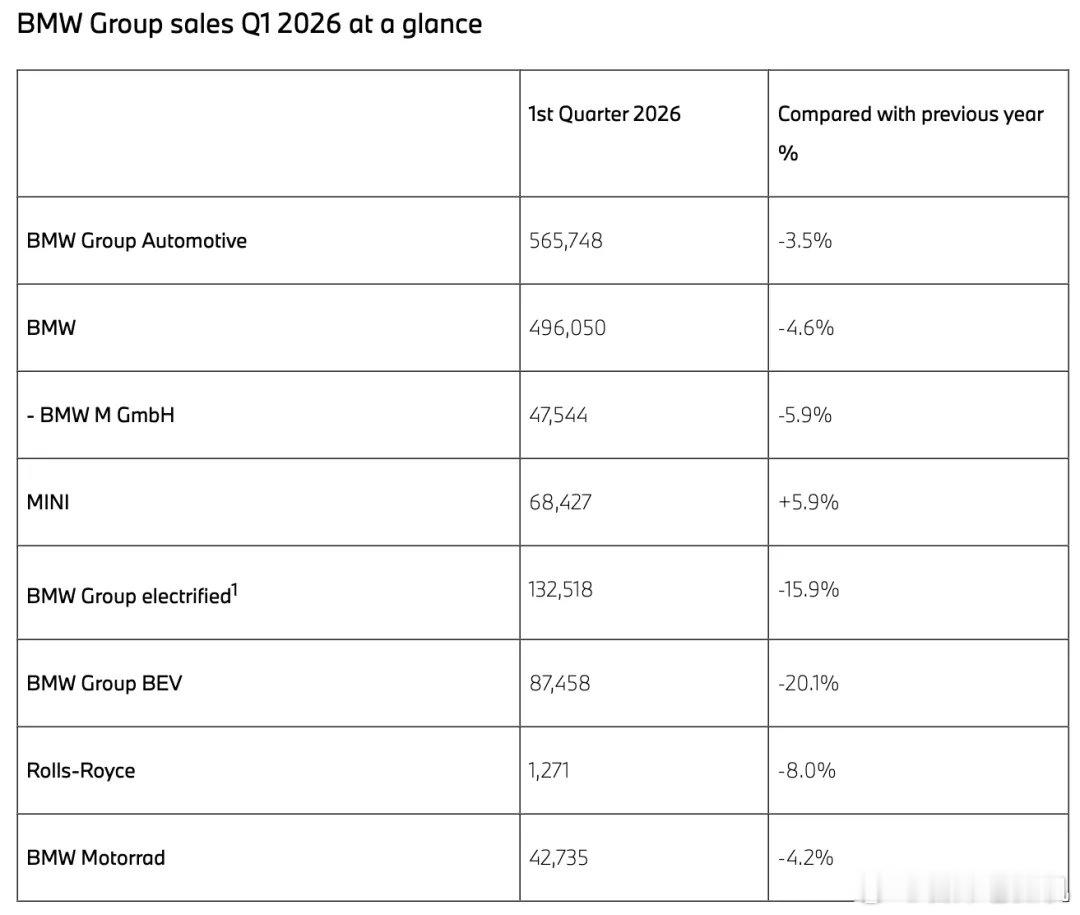 一季度同比再降3.5%!不仅国内卖不动,美国市场也下滑了4.3%!除了MINI,M、劳斯莱斯、摩托车……全下降!