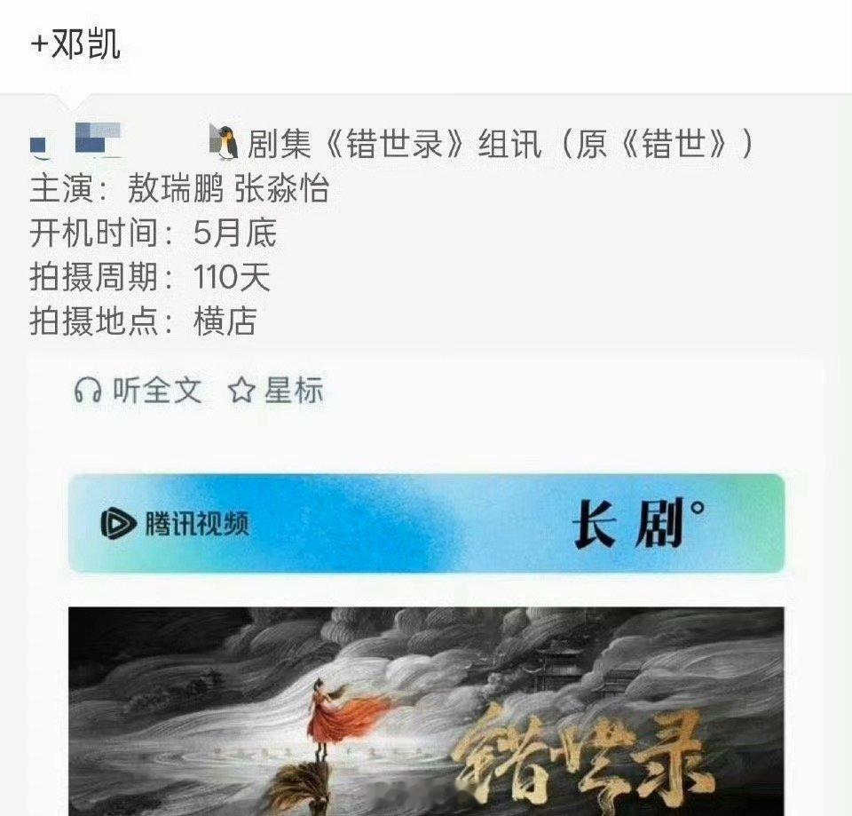 曝敖瑞鹏错世录男二邓凯曝邓凯出演错世录 哇哇哇哇,邓凯的下部剧有消息了啊,兜兜转转居然去演敖瑞鹏的《错世录》了!!!!不过粉丝觉得邓凯应该争取《神仙肉》男主,认为虞书欣是旺男主体质,不过还是尊重邓凯的想法叭,燥候帅哥进组啦!!!