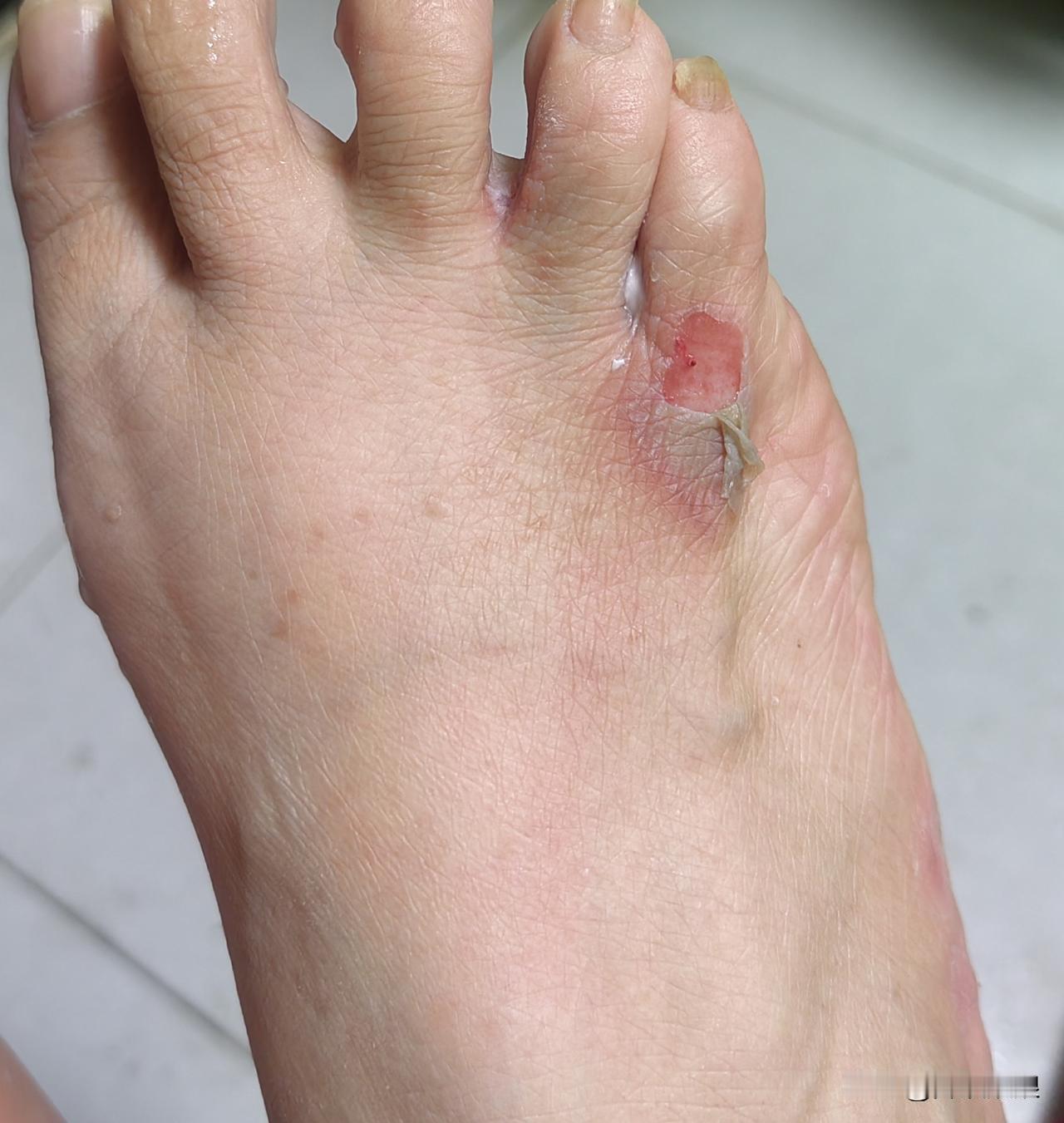 忙两天,发现脚越发疼,我仔细看看,破皮了。