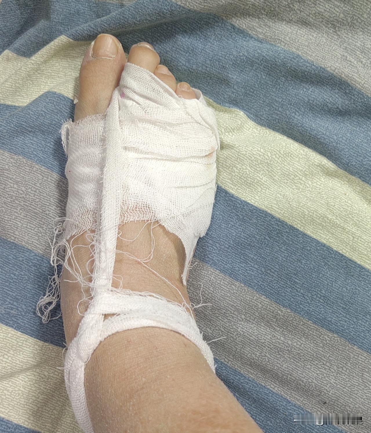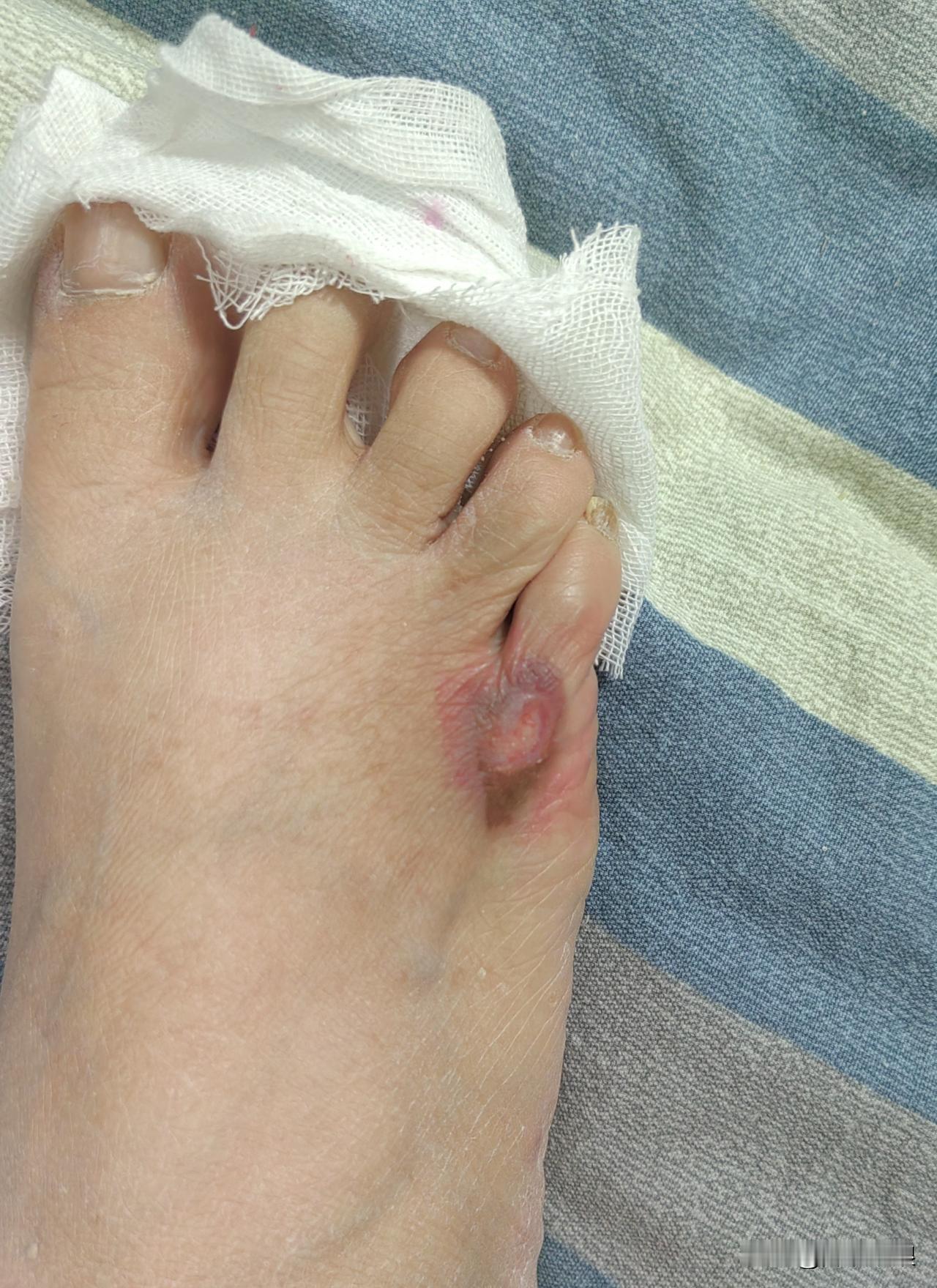 我今天休息了,没去开店。 我的脚在老公住院之前烫到了,当时只是疼,也没放在心上