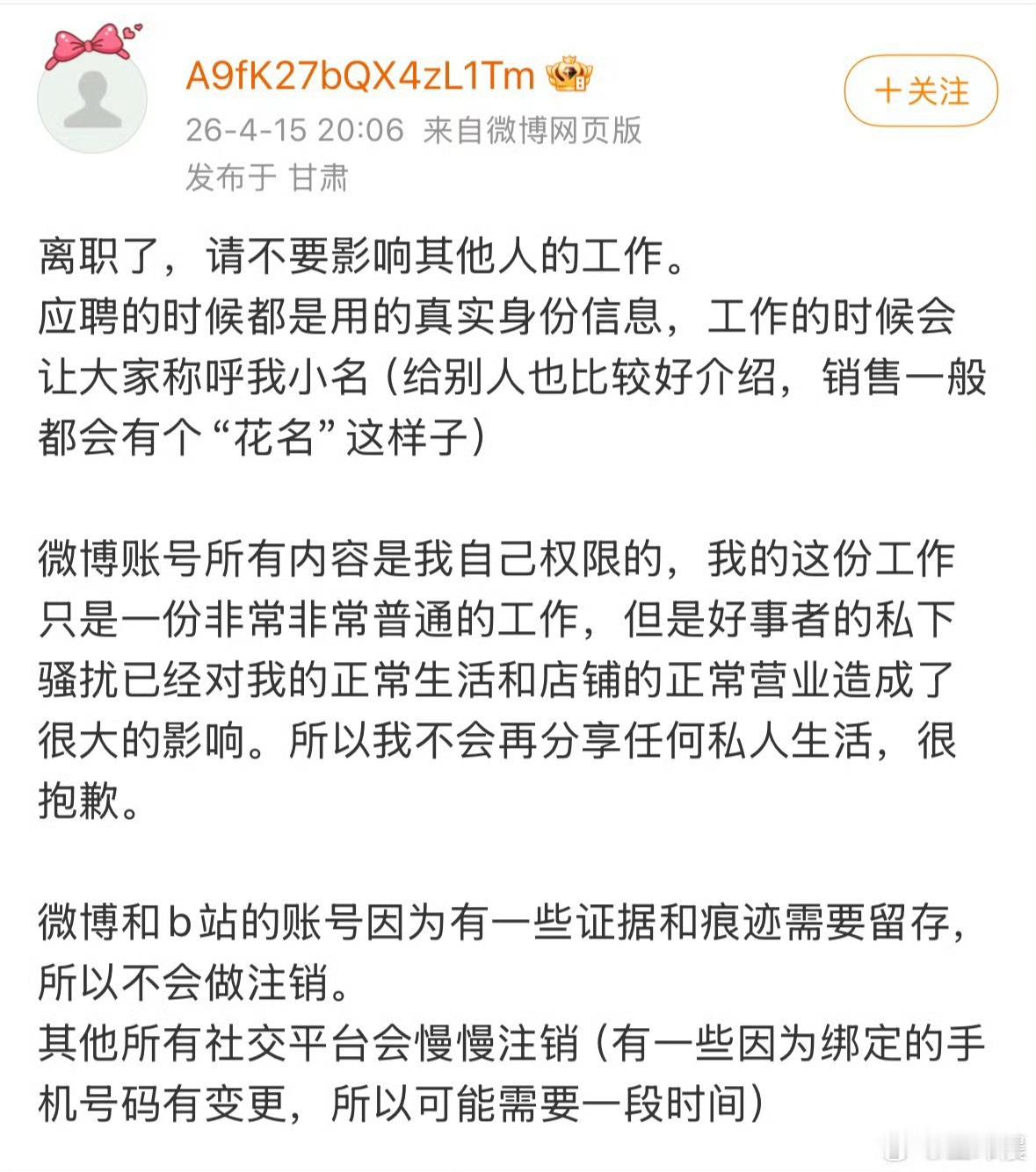 武大杨某媛前几天还在服装销售。 这才几天啊,离职了。