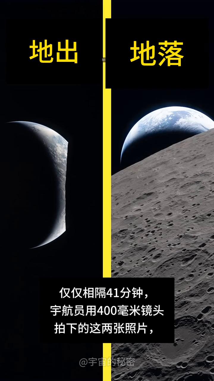 仅仅相隔41分钟,宇航员用400毫米镜头拍下的这两张照片,"地落"和"地出"却都在讲述同一个故事。一声再见,一声你好,首尾呼应。人类花了57年才重返月球并完成这样的画面。