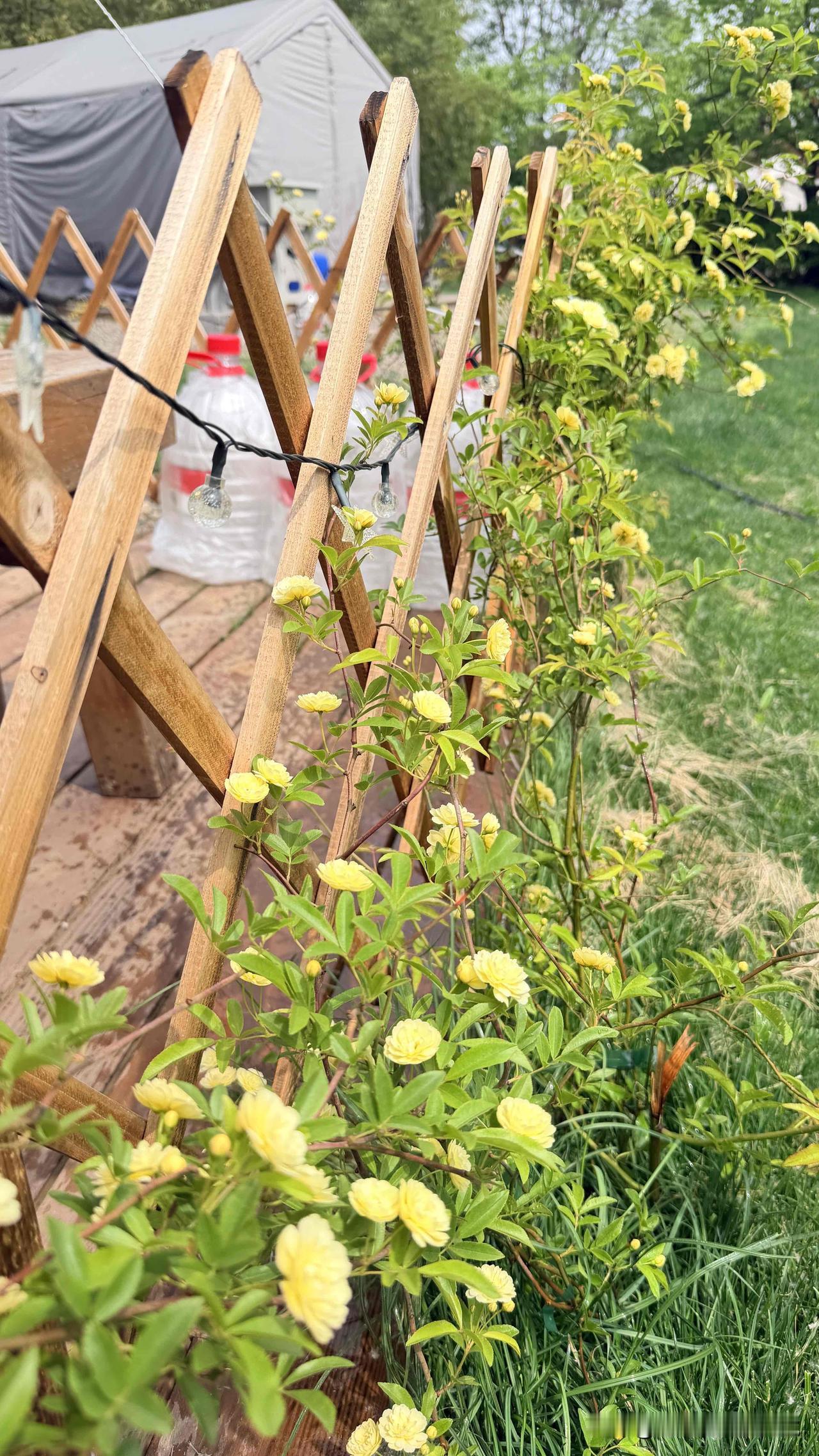 春风里,花园的黄木香如约盛放。鹅黄花瓣层层叠叠,像揉碎的暖阳缀在枝头,簇拥成温柔