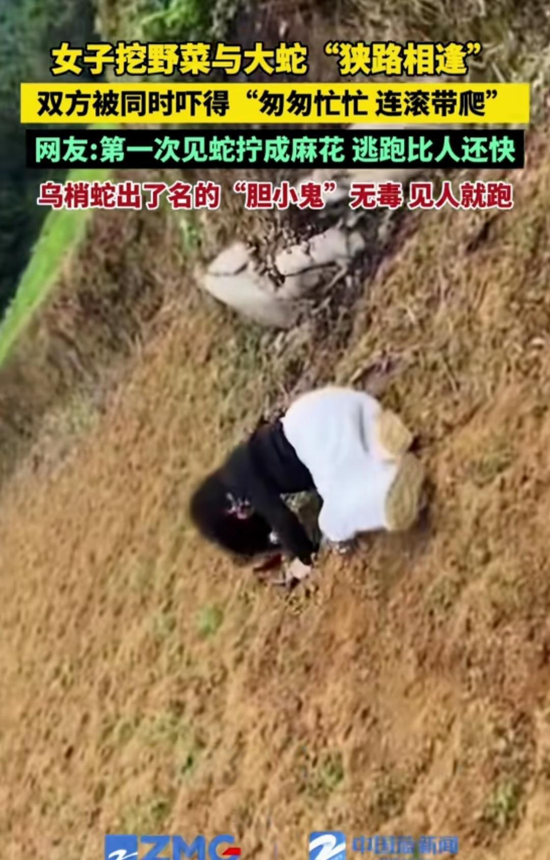 “笑不活了!”四川,一位女子趁着春光去山间挖野菜,谁知竟撞上了一场“跨物种”的胆量大比拼。