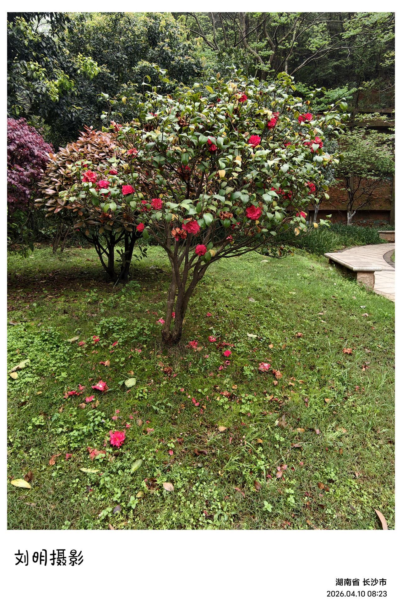 旁边的山茶花倒还撑得住,红得沉稳,不张扬,也不慌乱,只是地上已落了密密一层,红红点点,铺了一地。