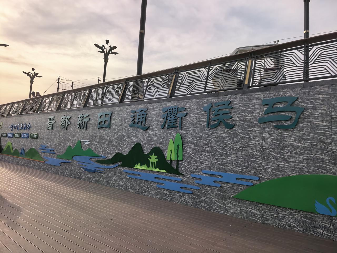 下午去正在修建的湿地公园溜达,远远看见墙上有一行“晋都新田 通衢侯马”的字样,