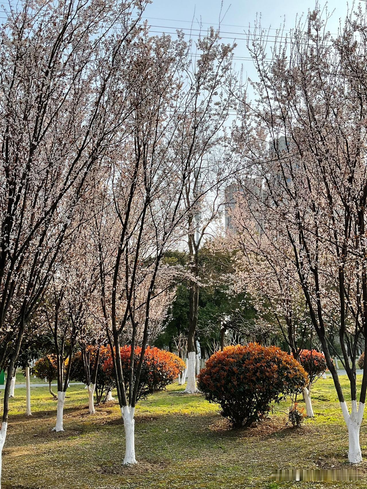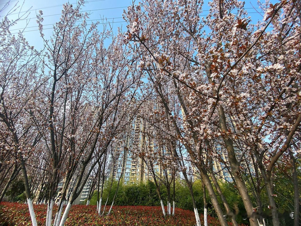 柳树垂丝,春风拂面。 此刻紫叶李的浪漫,是春天写给城市的诗。 去年就发现了这片美