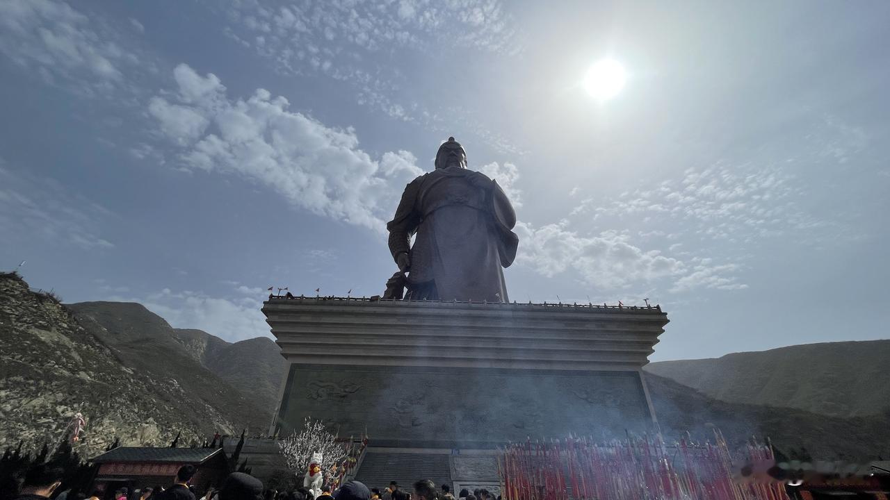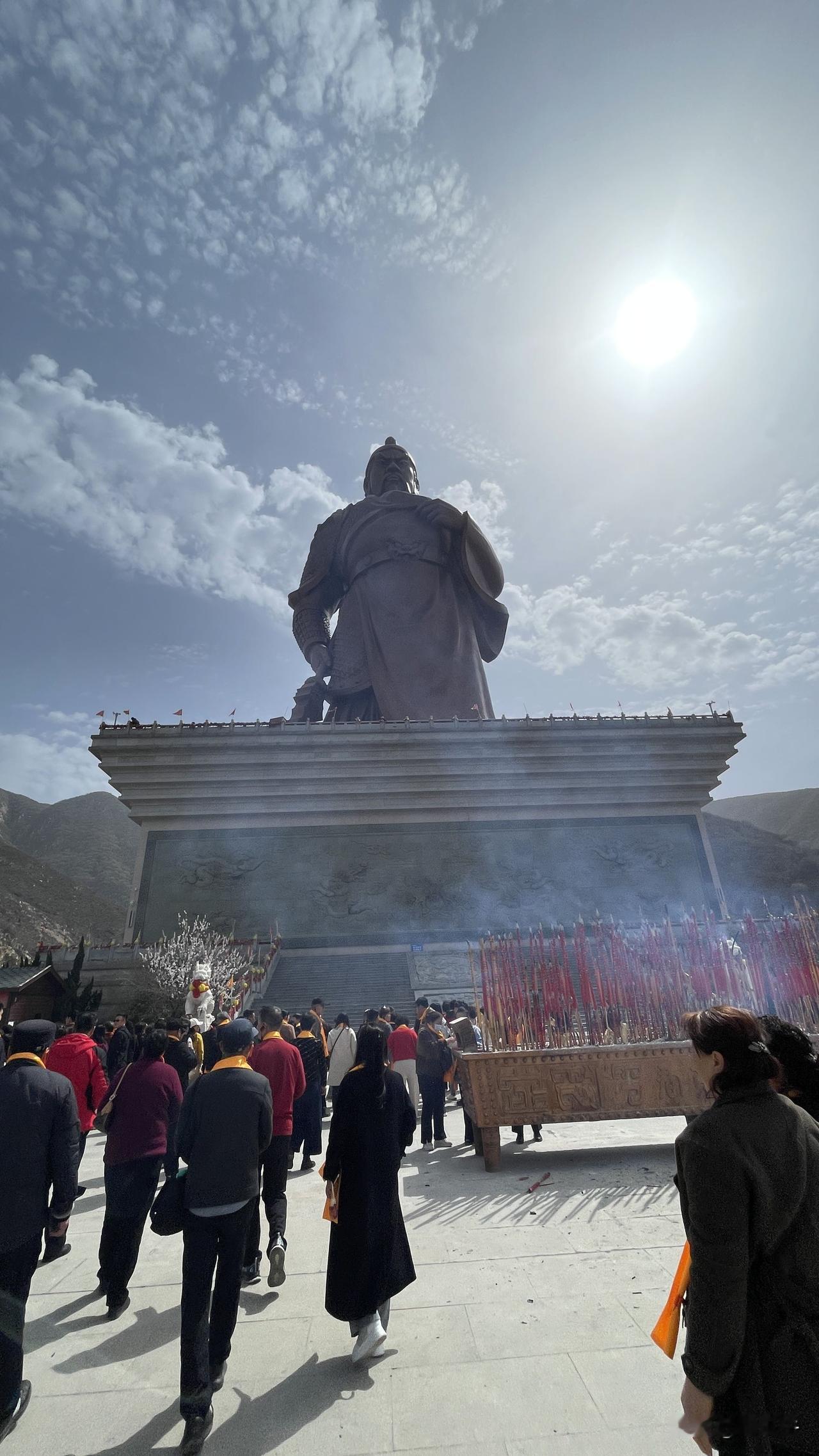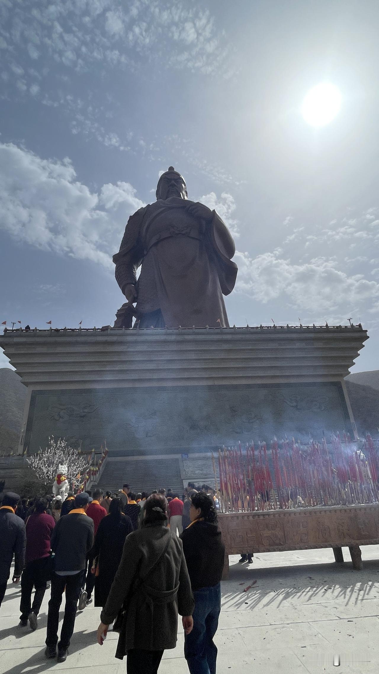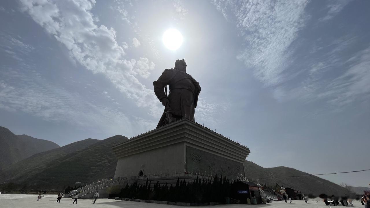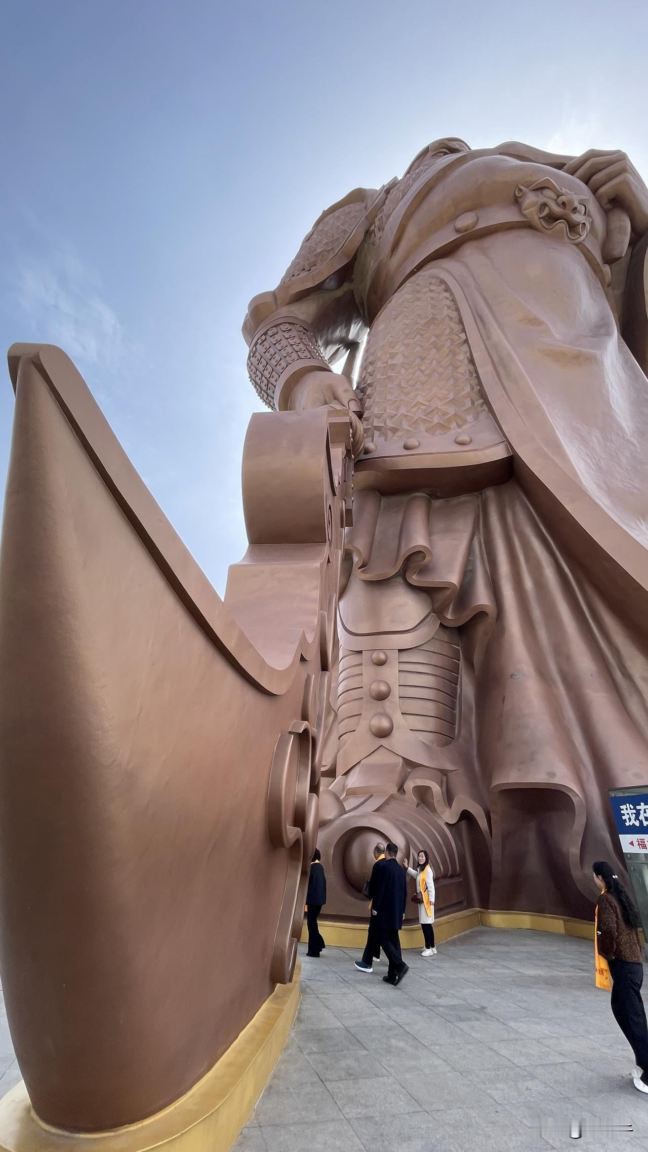 从解州关帝庙结束参观,我们便直奔关帝圣像。其实看远处就已经能够看得到圣像的身影,伟岸高大,又气势汹汹。