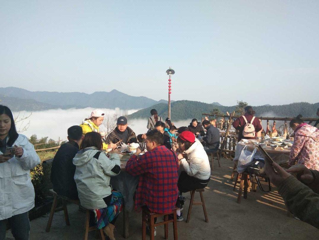 🏡农家乐就在木梨硔上面,规模不大不小,我们七八个人包了一层正好。推开窗,整个村子都泡在云里,真有点做神仙的感觉。