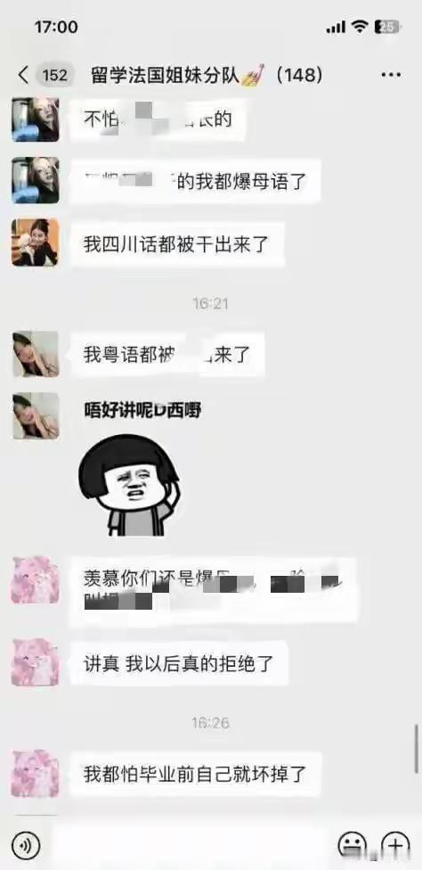 最近一组在法国留学的女生小圈子聊天记录被曝光,内容不堪入目,充斥着低俗粗鄙的言论