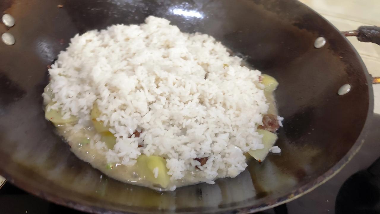 春日生活打卡季春日美食不可辜负!刚出炉的新鲜的豌豆和土豆一起和腊肉,香肠箜饭吃,