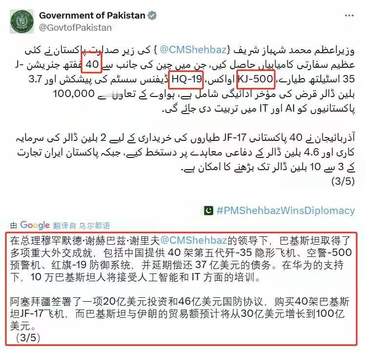 据巴基斯坦媒体爆料,巴基斯坦将从我国引进空警 - 500E、歼 - 35E 与红旗 - 19E 的全新组合。