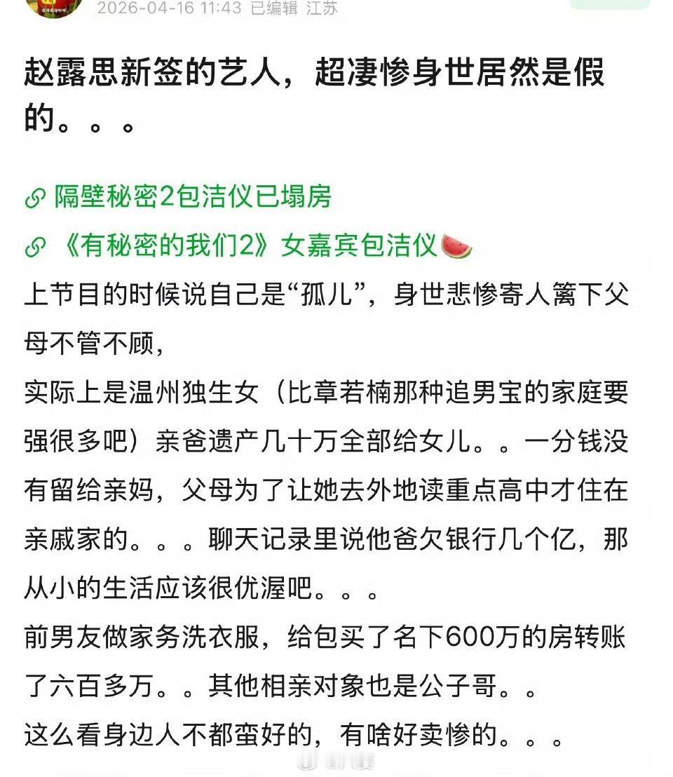 曝包洁仪凄惨身世是假的最让人不适的,从来不是家境好坏,而是拿“悲惨身世”当人设,