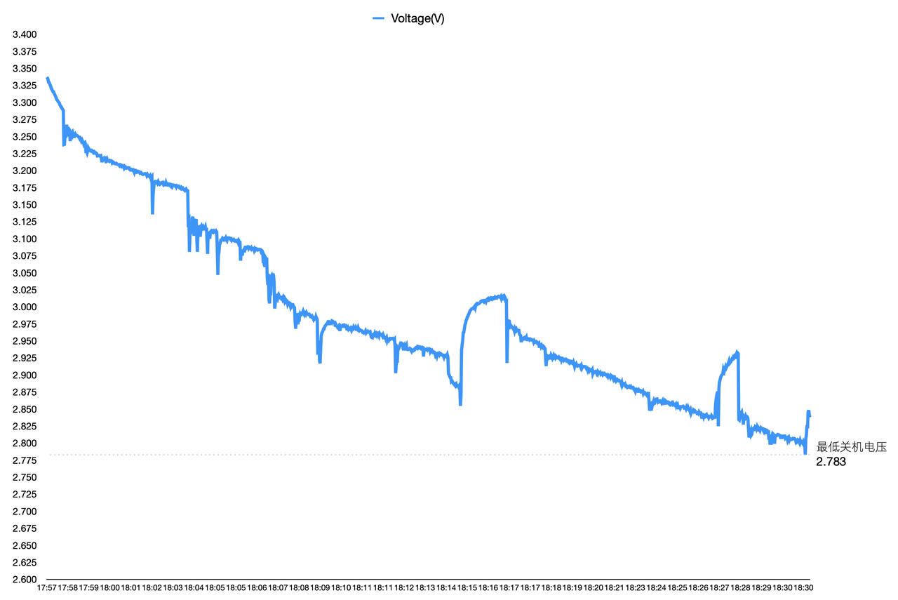 通过ADB抓log获取到低电量模式下的最低关机电压为2.783V。