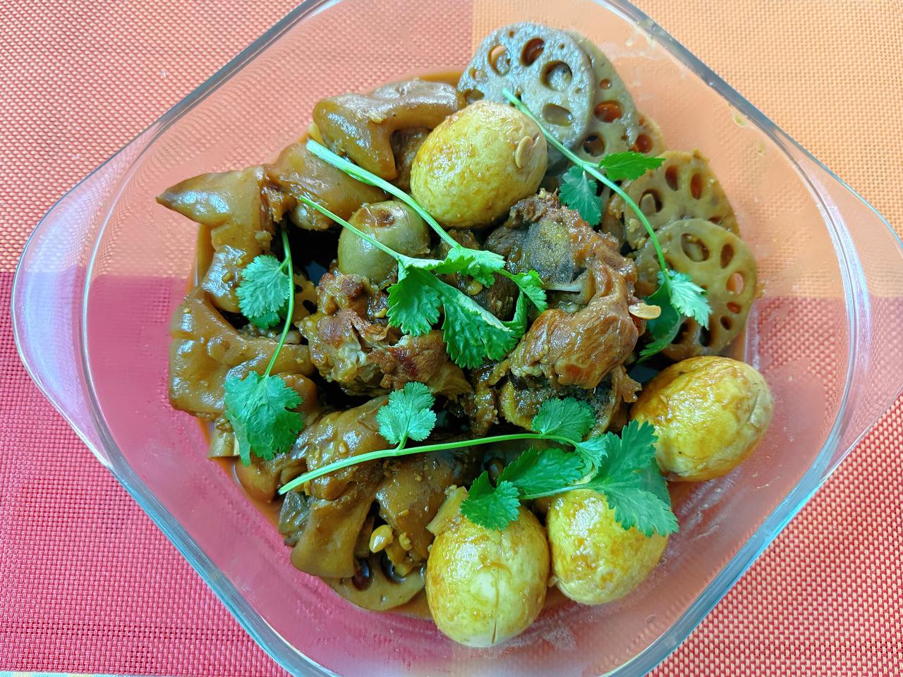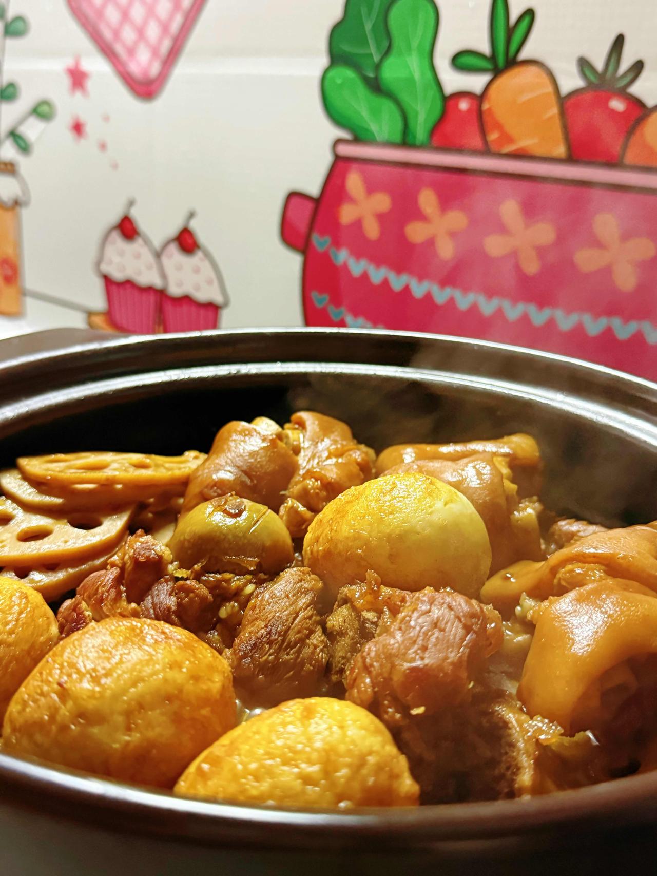 早上7:30下单,8:30起床,用筒骨、猪蹄、莲藕,再加上虎皮鸡蛋,炖一锅超香的家常菜。
