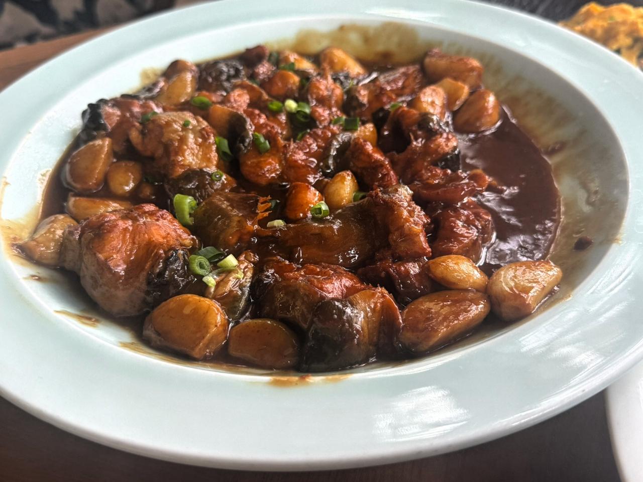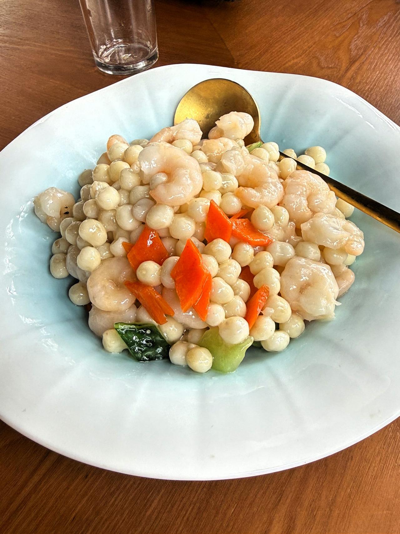 三人点了四个菜,招牌红烧鳗鱼浓油赤酱,鳗鱼软糯入味、胶质满满,鸡头米炒虾仁新鲜清甜,鸡头米软糯、虾仁Q弹。银鱼炒土鸡蛋尝到了太湖的鲜味,再配一盘马兰头香干,清爽解腻,地道春日野菜,鲜香爽口,菜量刚好全部光盘。
