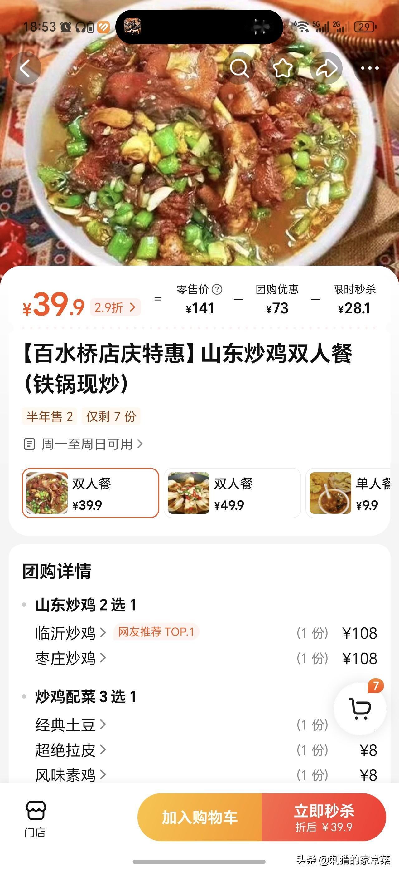 于是朋友打算推出特价团购来引流,就像图片里的炒鸡,一份用一只三斤左右的小公鸡,准备卖58元一份。可一看别家,同样的炒鸡只卖39.9元,还多送一道凉菜。和朋友算了算成本,这39.9元的价格,要是用鲜鸡,估计连食材成本都保不住!