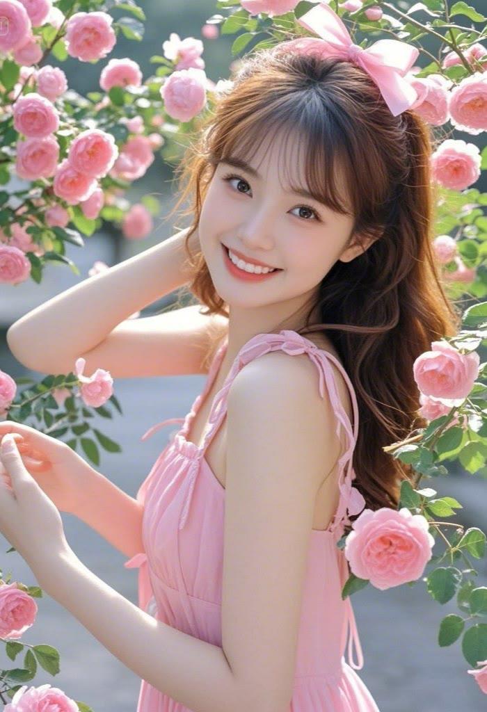 少女心爆棚的粉色花海,甜美笑容,少女感满满!🌸💕