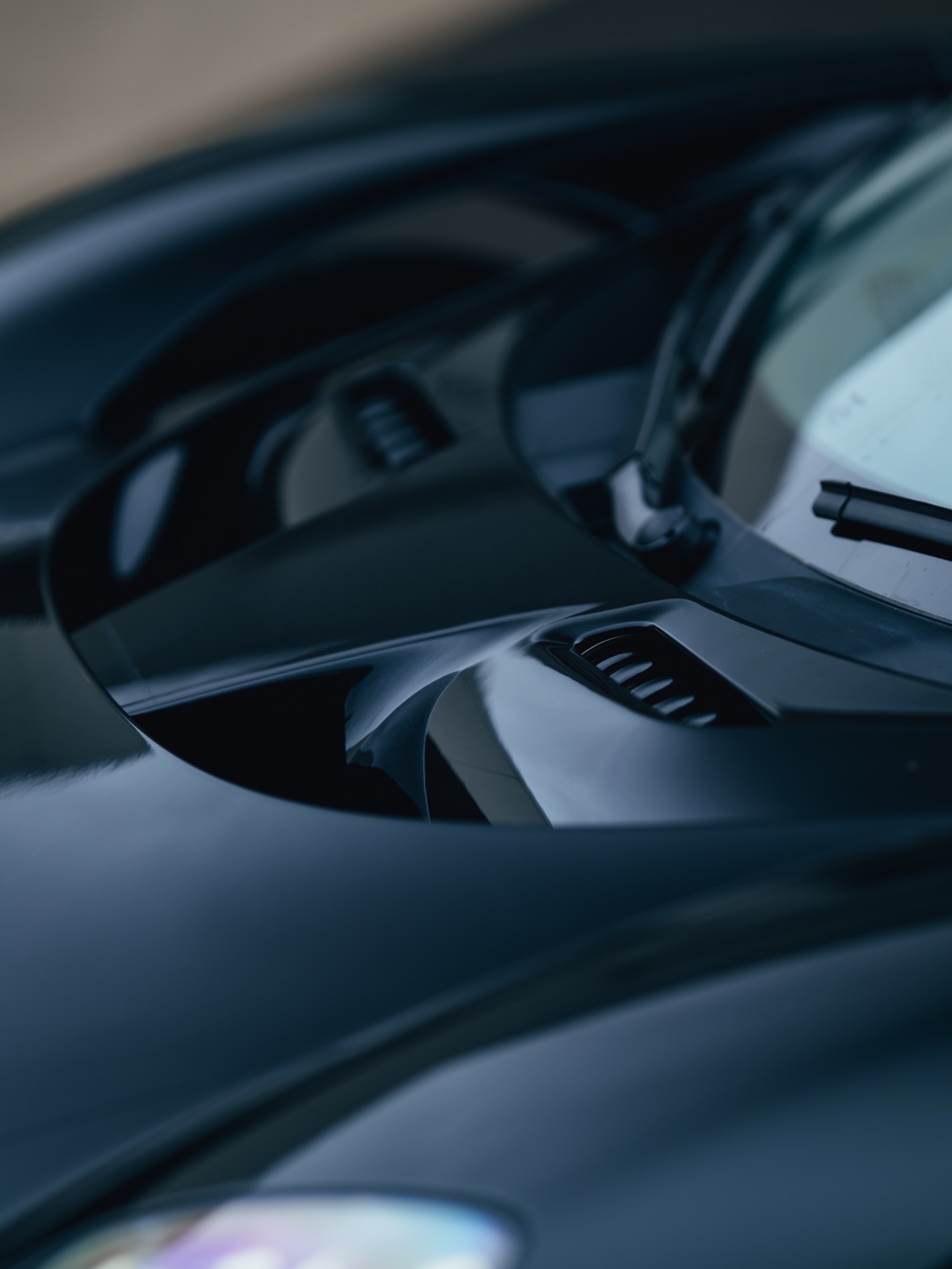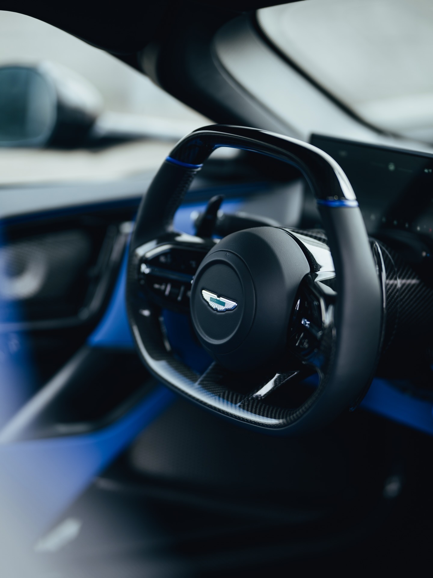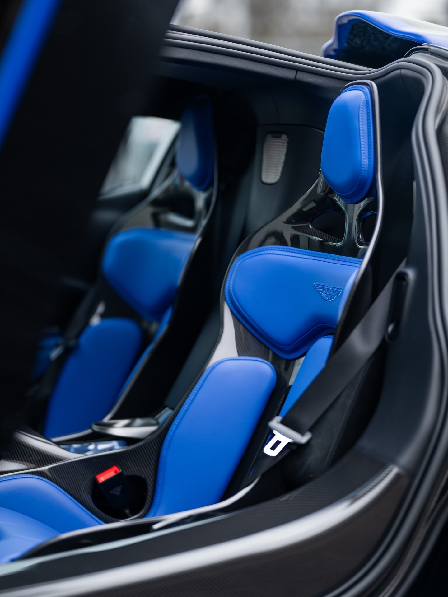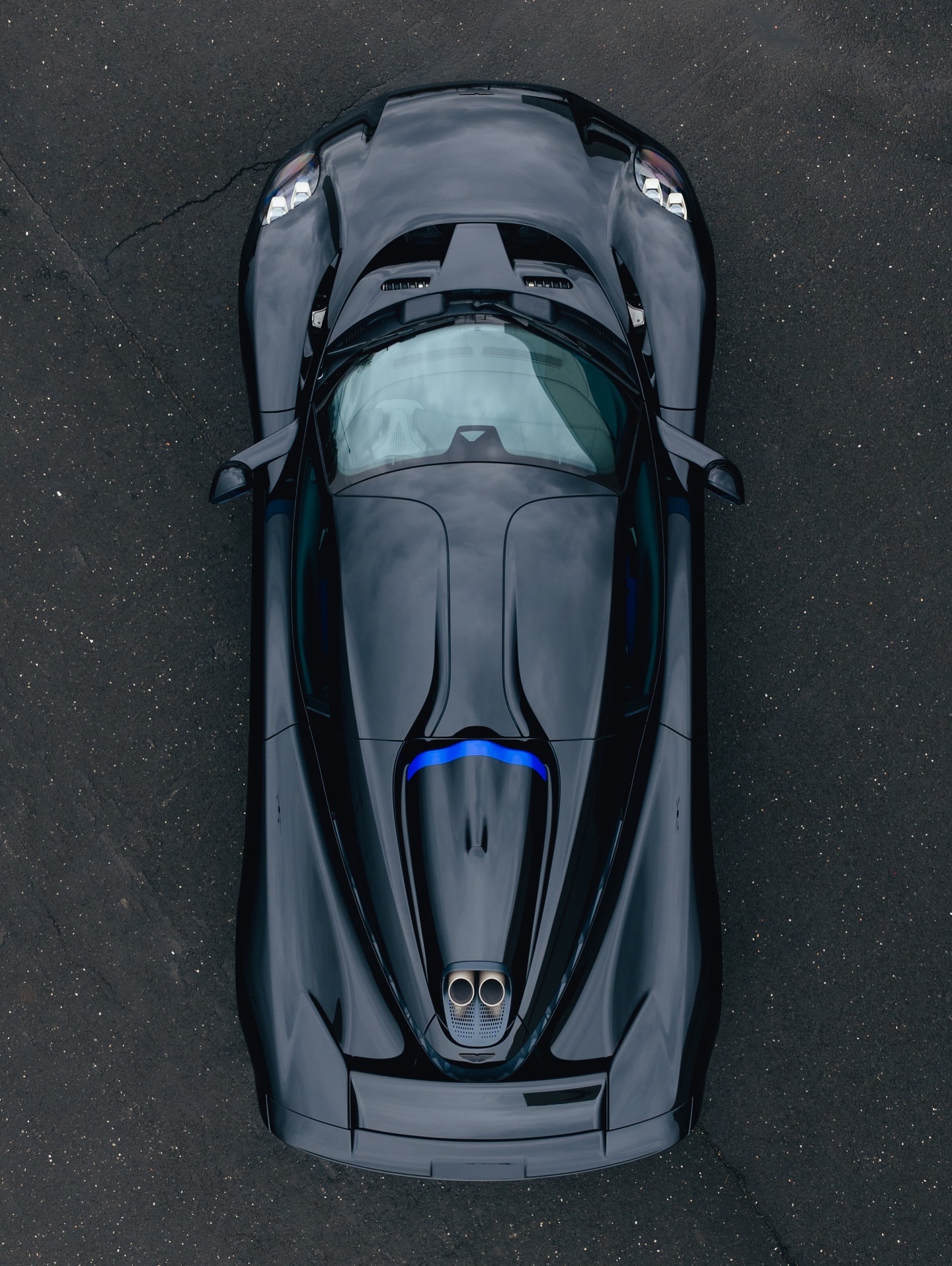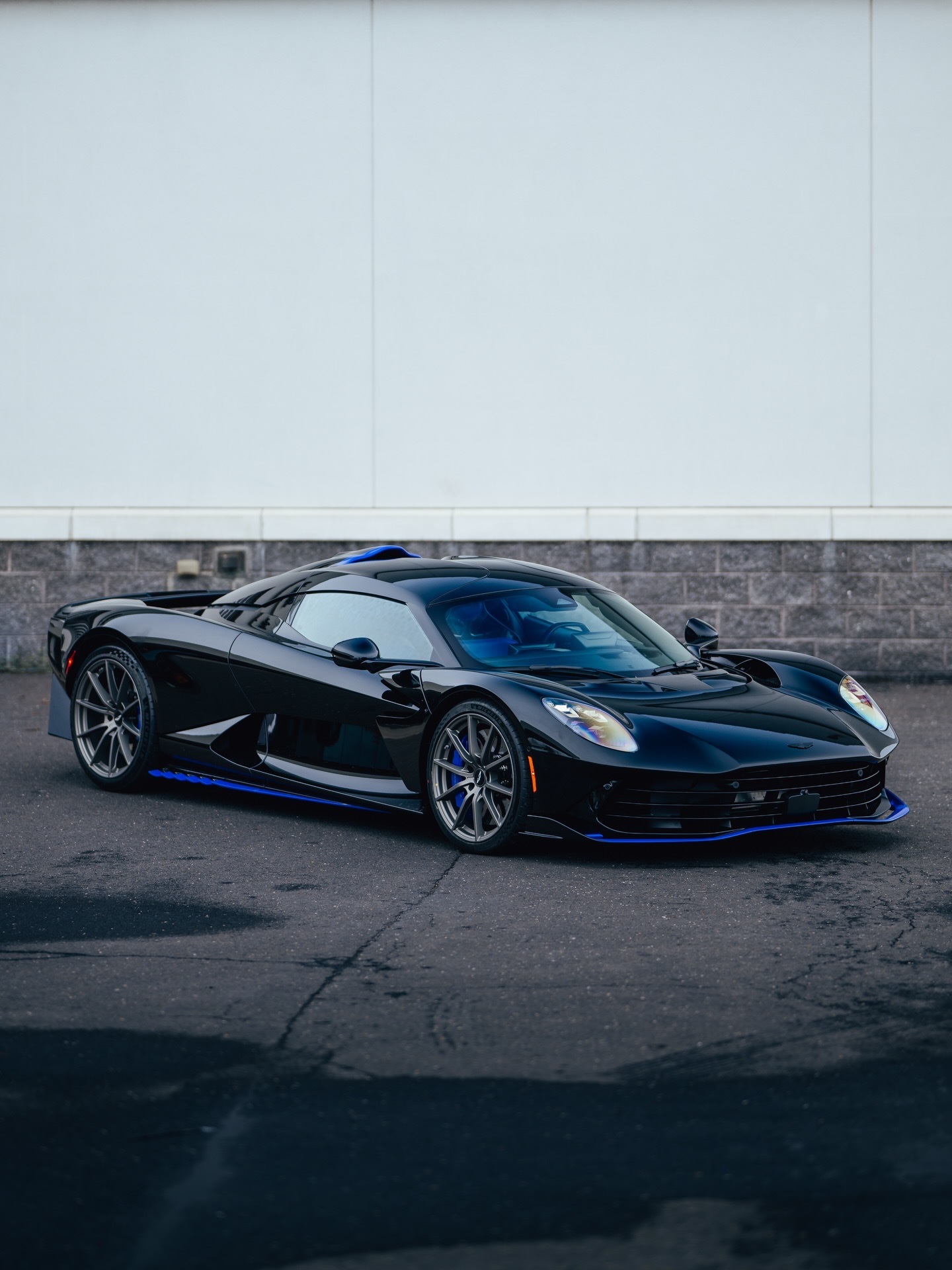 这辆阿斯顿·马丁Valhalla全黑外观,在前唇、侧裙和车顶进气口的边缘饰有细腻的对比色点缀。