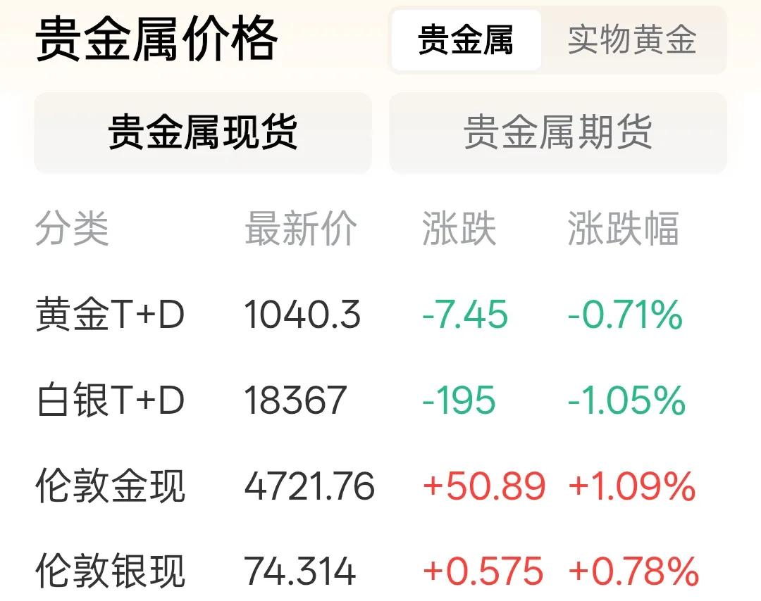 今天是2026年的4月13日,星期一,现在是上午10点钟。打开手机数据显示,黄金白银一片绿!今天开盘黄金下跌了!当前的的国际金价是1039.99元每克,最高开最高开1053元每克,最低开1031元每克,开盘是1049元每克,昨结是1047元每克。从今天的开盘数据来看,黄金是下跌了,但是在轻微的向上浮动。今天黄金价格究竟是涨多少?还是跌多少?在晚上的收盘数据,我们才能确定黄金的最新价格!