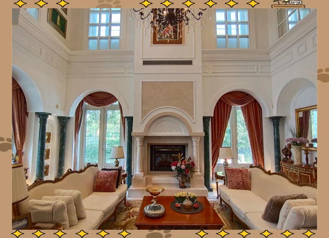 下车跟着他往里走,光是花园就逛了好几分钟,草坪修剪得比高尔夫球场还平整,里面种着好几棵名贵树木,同学轻描淡写说一棵就几十万。走到门口,那扇铜门看着就沉甸甸的,据说和汤臣一品是同款,推开门的瞬间,我直接被客厅的挑高惊到了,足足有20多米,抬头看都有点晕,10根大石柱立在那,上面的花纹是上千人雕了一年才完成的,水晶吊灯上的灯管足足有5000支,亮起来的时候晃得人睁不开眼。