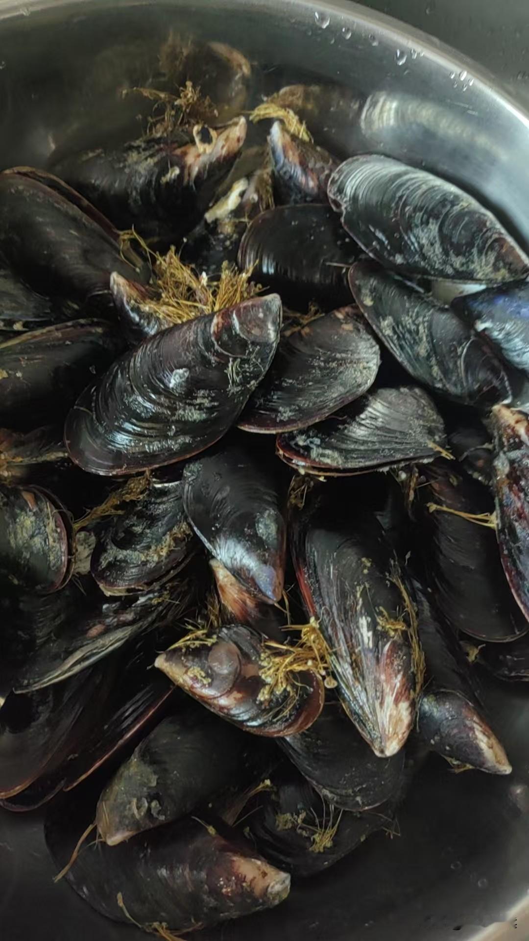 今天没干活,也没画画,也没雕刻木头。出去溜达一圈,看见一些小海鲜。这里叫海虹。我不知道别的地方叫什么。6块钱一斤,比以前贵多了。一天10块钱三斤。现在贵了,这个也比较大,也比较肥。[大笑][大笑][大笑]干炸海虹 海虹炖苔菜 焗海虹