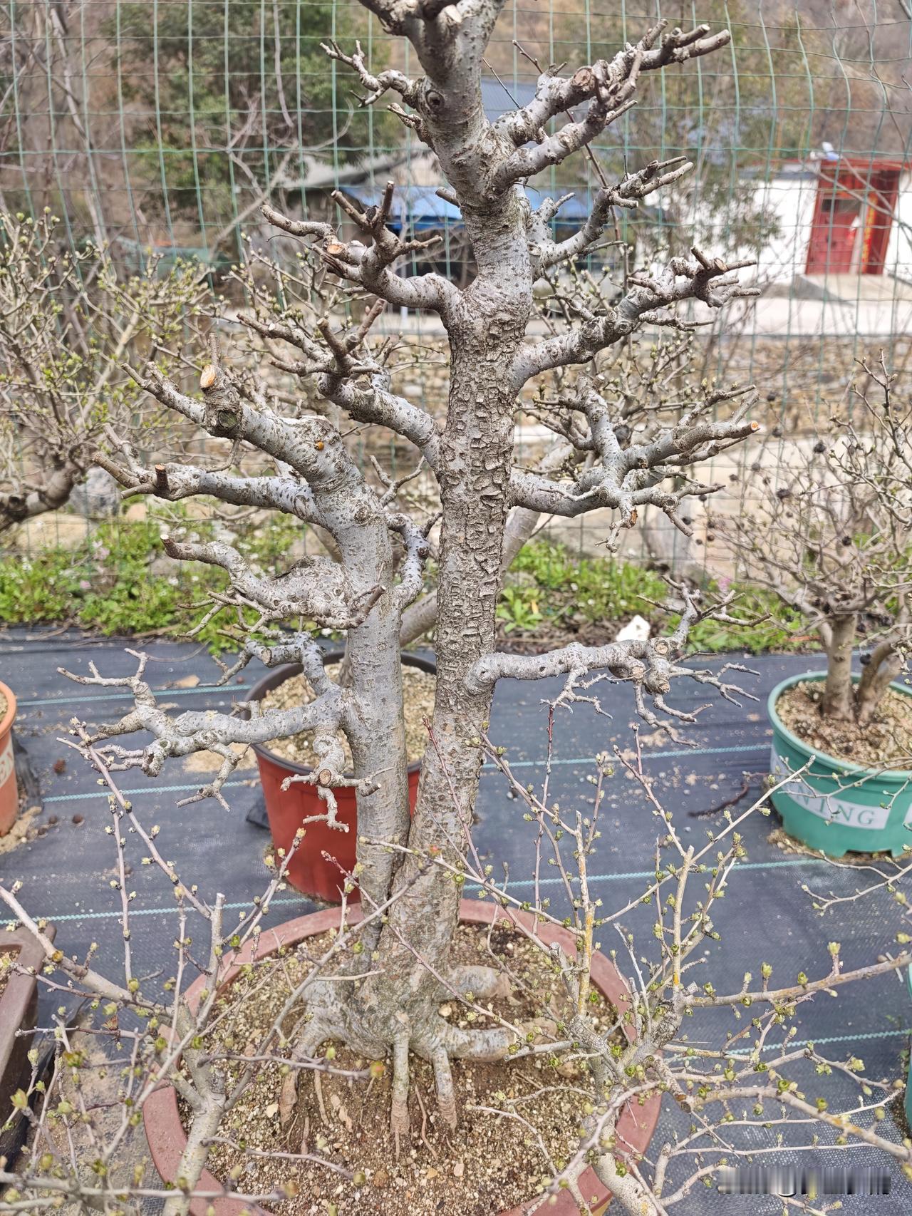 记录我的2026一次南阳之行,竟然无意当中走进了一个山里,也许是喜爱盆景的原因,感到这里玩盆景的人很多,在当地就听到有一对夫妻,在山里养盆景,翻开她的抖音才知道就在这个山里面,于是就驱车前往,进山不久,就看到一个深藏山里的小山村,也只有几户人家,翻过一个盆景主人自己垒的一个小台阶,就看到了一个别有洞天的精致盆景园,院子并不大,摆满了各种各样的盆景,有养护多年的盆景,也有自己精心培育的小微盆景,品种主要还是以河南特有的小叶山里红盆景,盆景的主人叫小李,他从山里红的种子播种,到小苗拿弯,都是用双手一棵一棵的绑扎造型。小李说:她从事盆景制作已经十余年了,开始也是在山里面挖生桩,但是她考虑到市场的需求,同时也是为了保护山里的野生资源,决定自己从种子繁育开始,一步一步将盆景这个行业做到了极致。