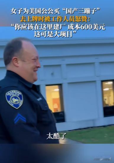 中国制造!2024年,女子为美国公公买“国产三蹦子”去上牌被工作人员怒赞:“你应该在这里建厂,成本600美元,这可是大项目!”网友:提示音居然还是中文发音!
