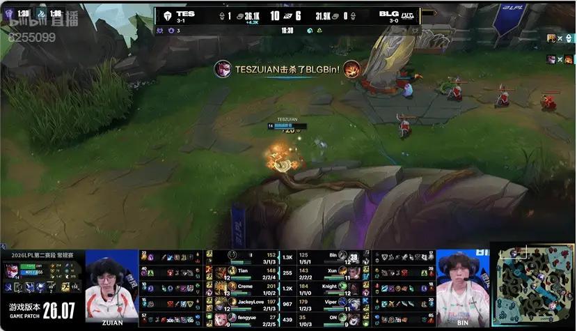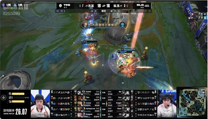 第二赛段目前只有JDG在BLG身上拿过一小分,今天TES这状态感觉要破功了?