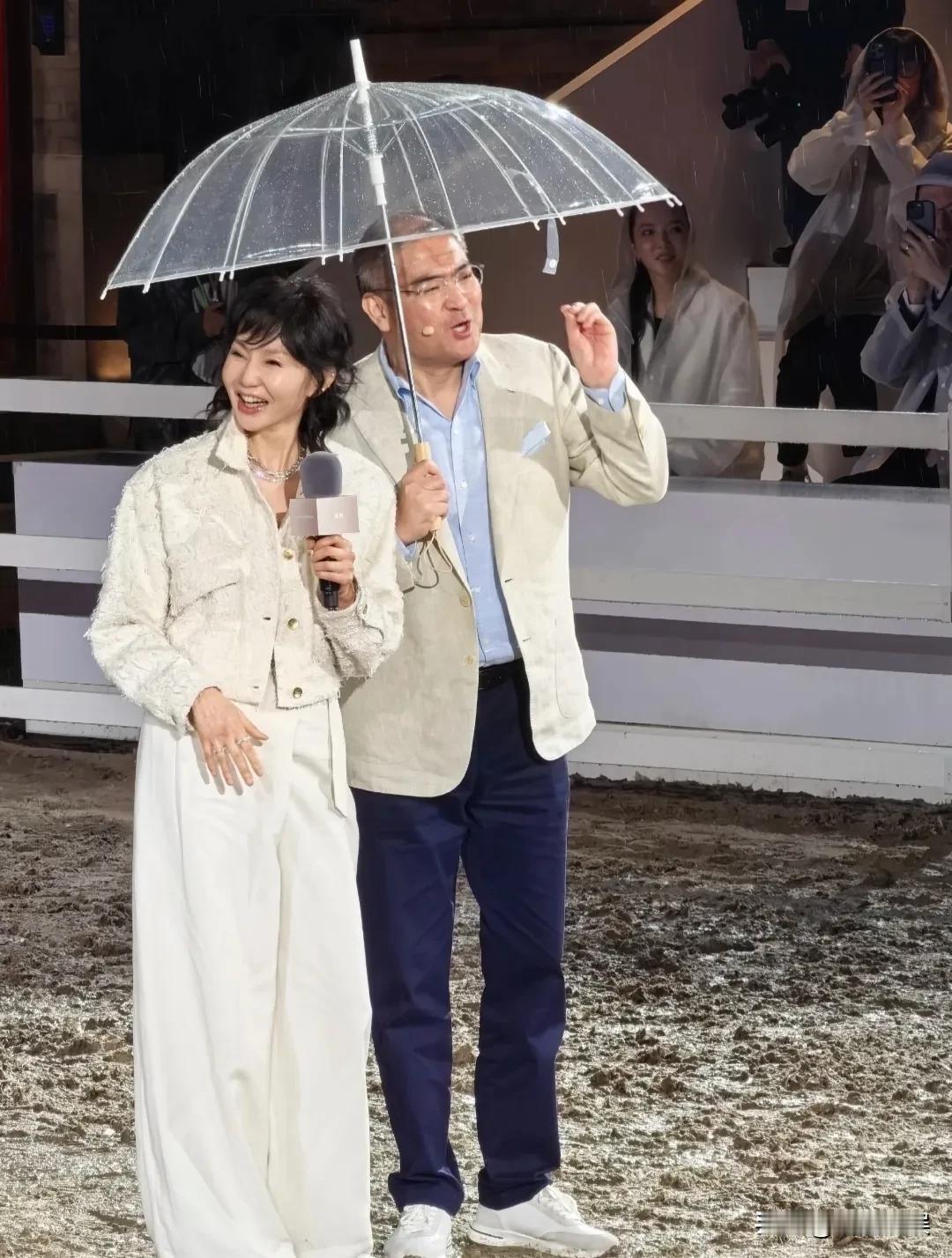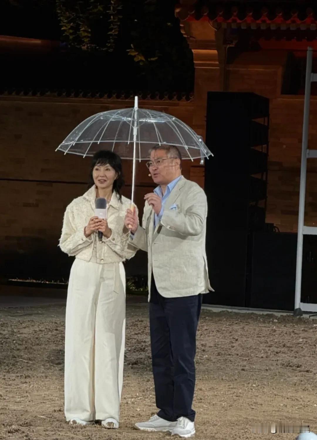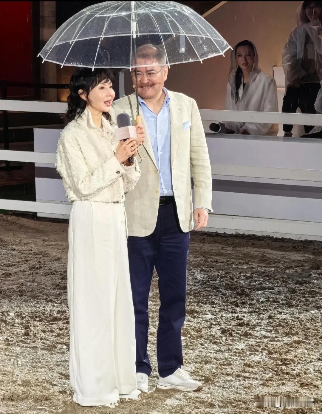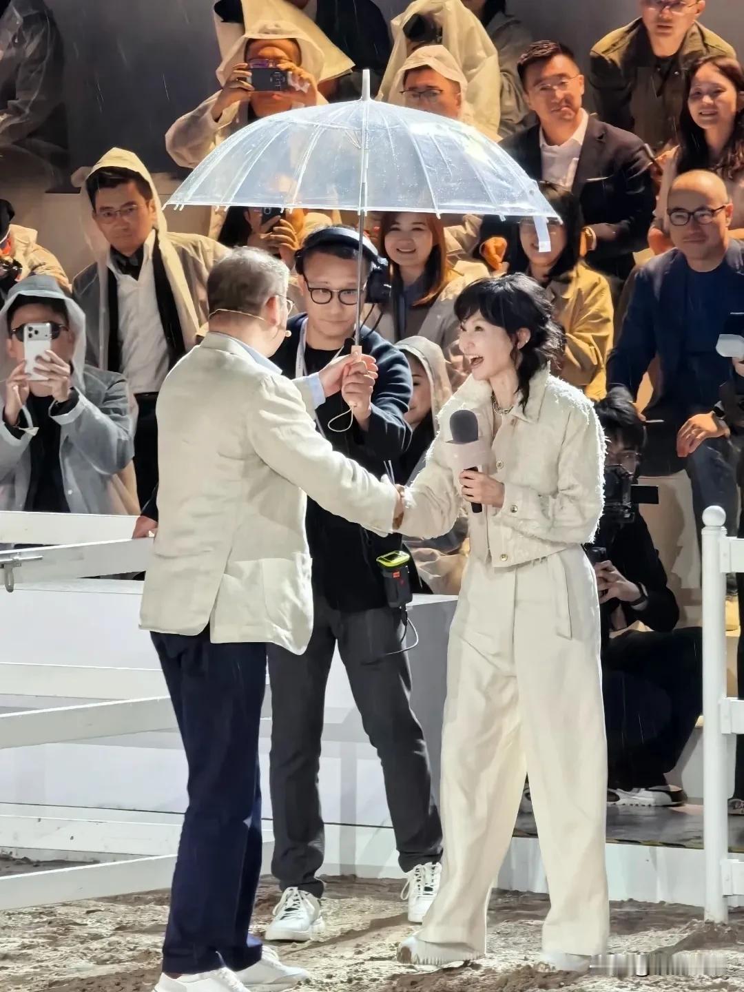 她在北京的小雨中登场,气氛更显浪漫,撑着小伞,穿着一身白色,脸好小好紧致,笑起来温婉、优雅。