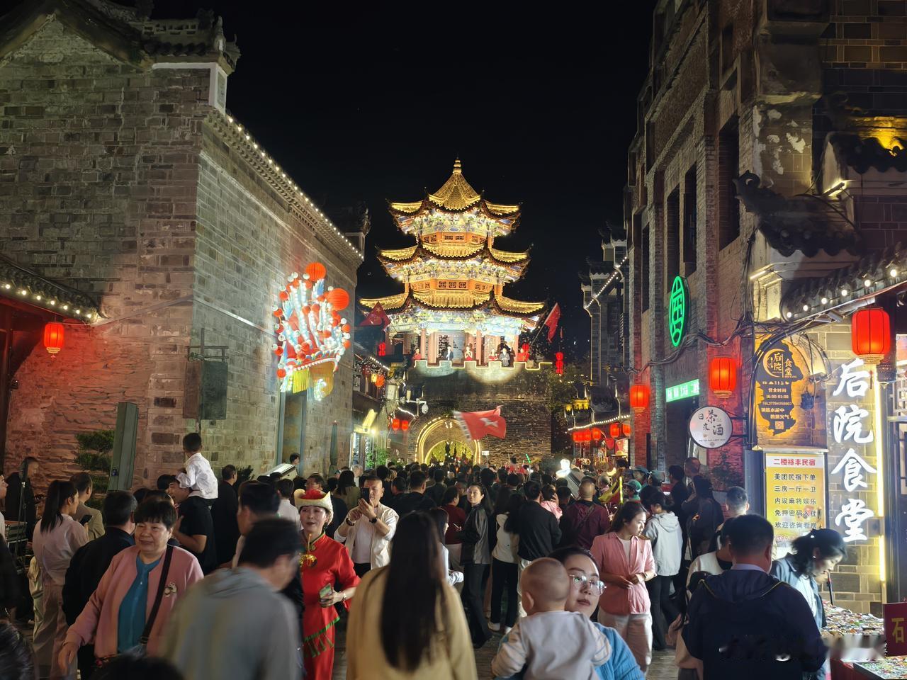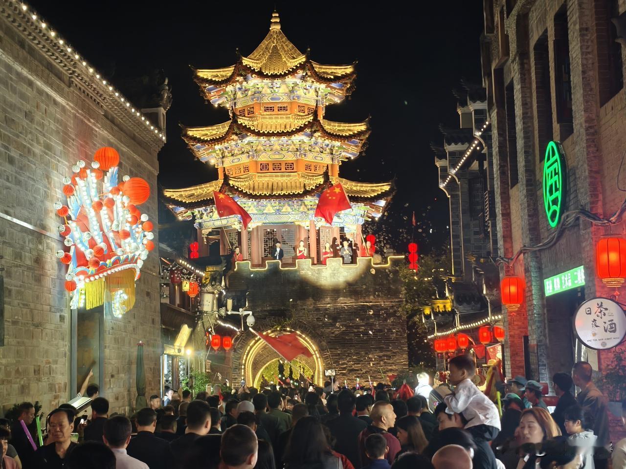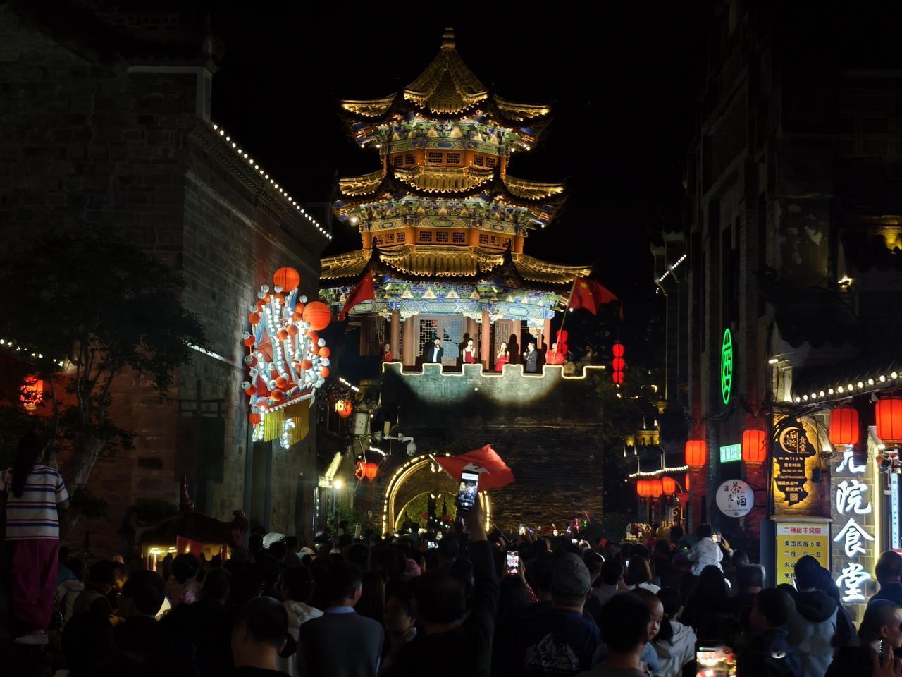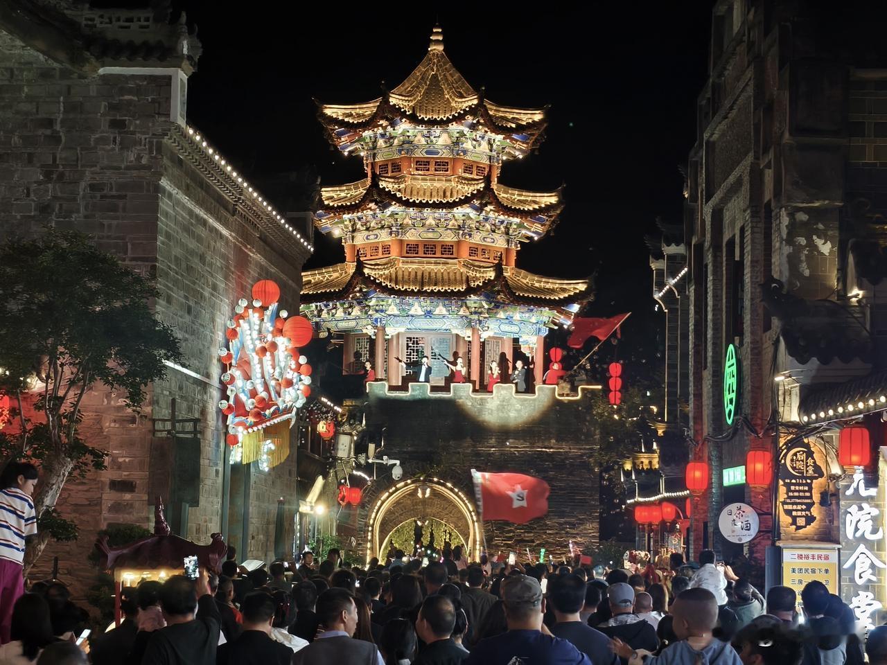 每日一图随手拍今夜石泉老街东门上表演节目,迎接领导