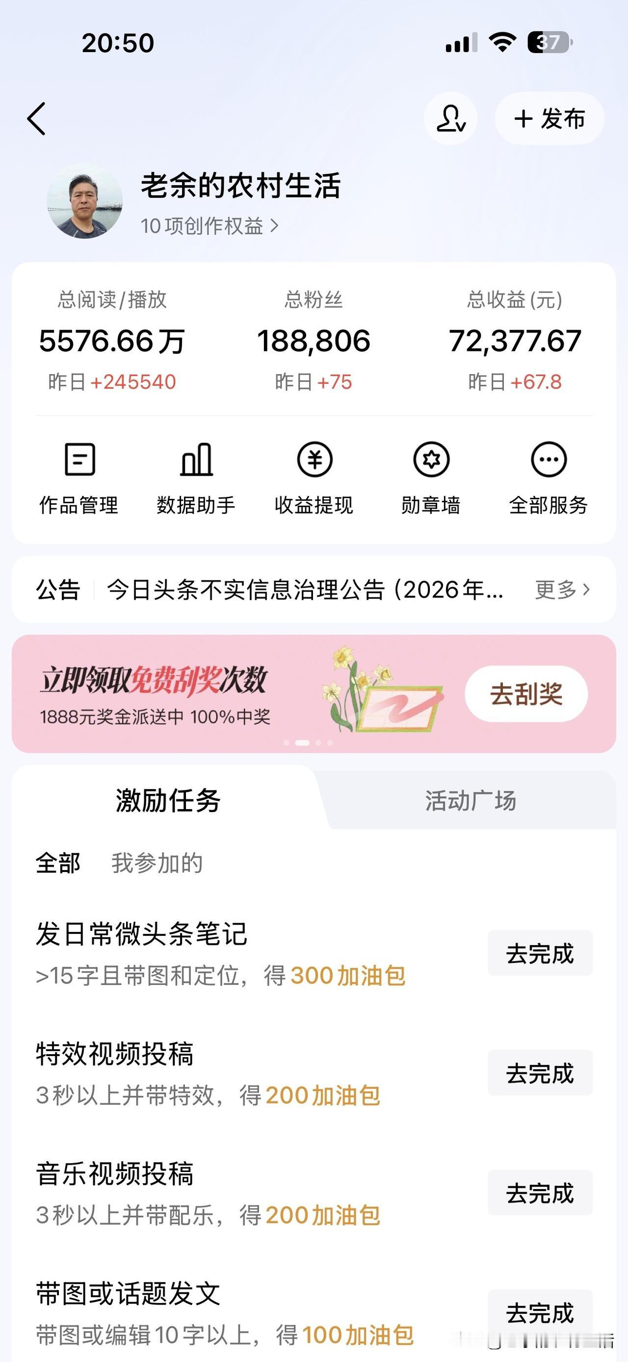 我一个礼拜的头条收入458元