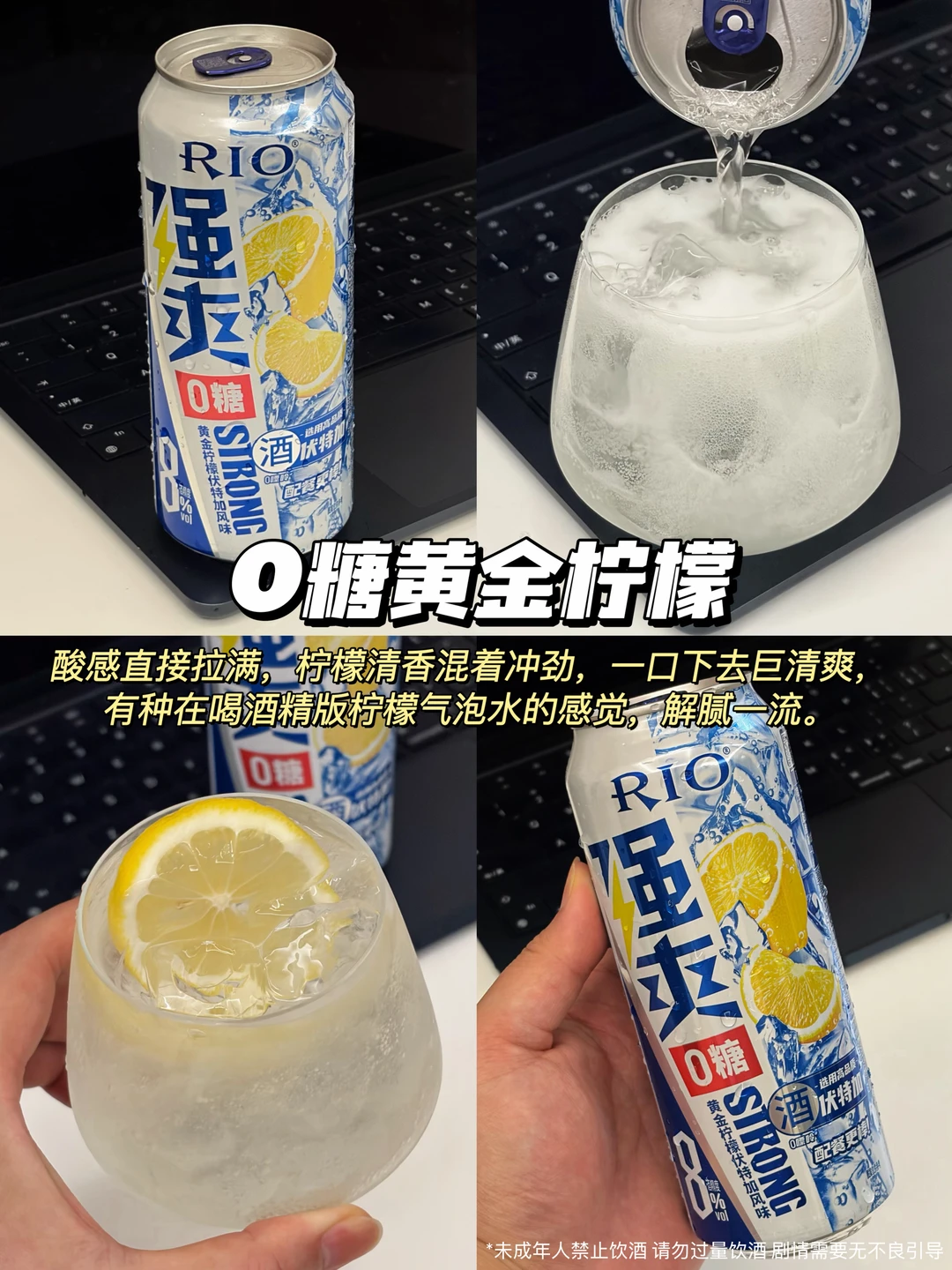 酸感直接拉满,柠檬清香混着冲劲,一口下去巨清爽,有种在喝酒精版柠檬气泡水的感觉,解腻一流,但酒感很重,上头速度贼快,夏天喝记得加冰,爽感翻倍,0糖对怕甜怕胖的女生也很友好,喜欢柠檬味直接go