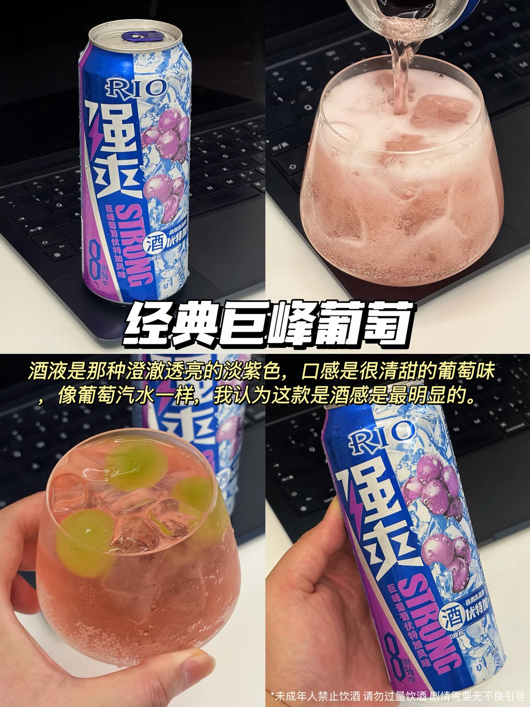 巨峰葡萄味也是我回购次数最多的一个味道,酒液是那种澄澈透亮的淡紫色,咕咚咕咚冒着气泡,口感是很清甜的葡萄味,像葡萄汽水一样,我认为这款是酒感是最明显的,跟茶酒相比,多了点甜腻的感觉