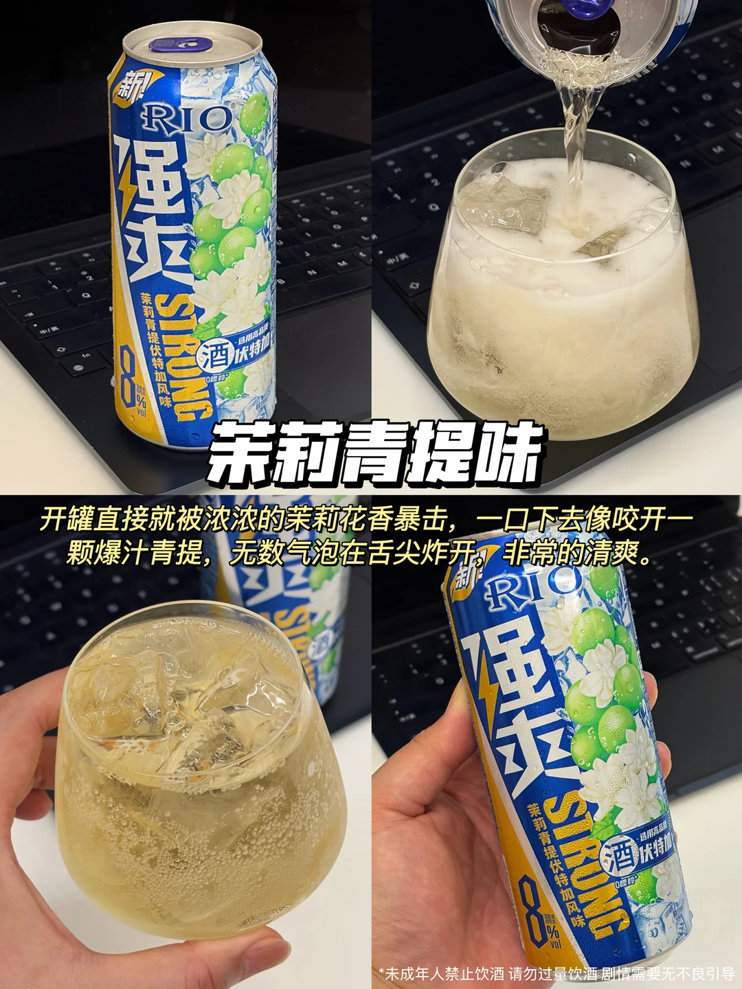 茉莉青提味是强爽另一款风靡社交平台的预调酒,开罐直接就被浓浓茉莉花香暴击,一口下去像咬开一颗爆汁青提,无数气泡在舌尖炸开,非常的清爽。相比少甜的0糖冻顶乌龙梅酒,茉莉青提味喝起来糖度较高,如果能出0糖款的感觉会更好喝