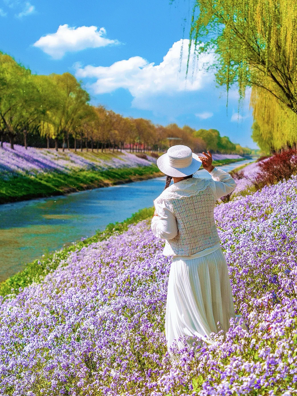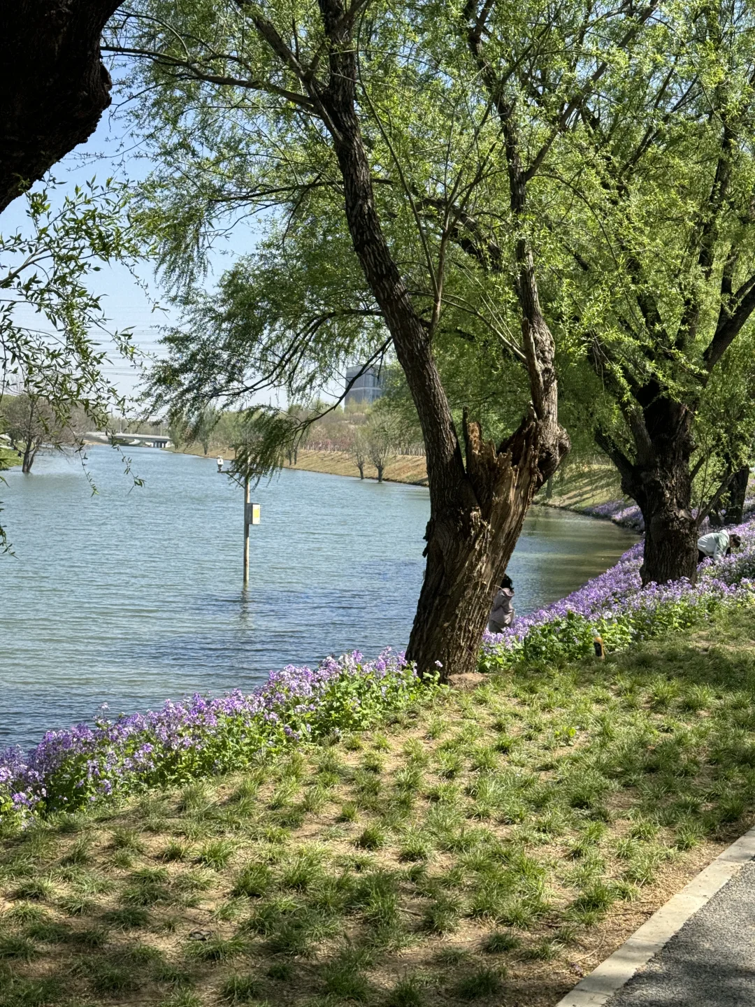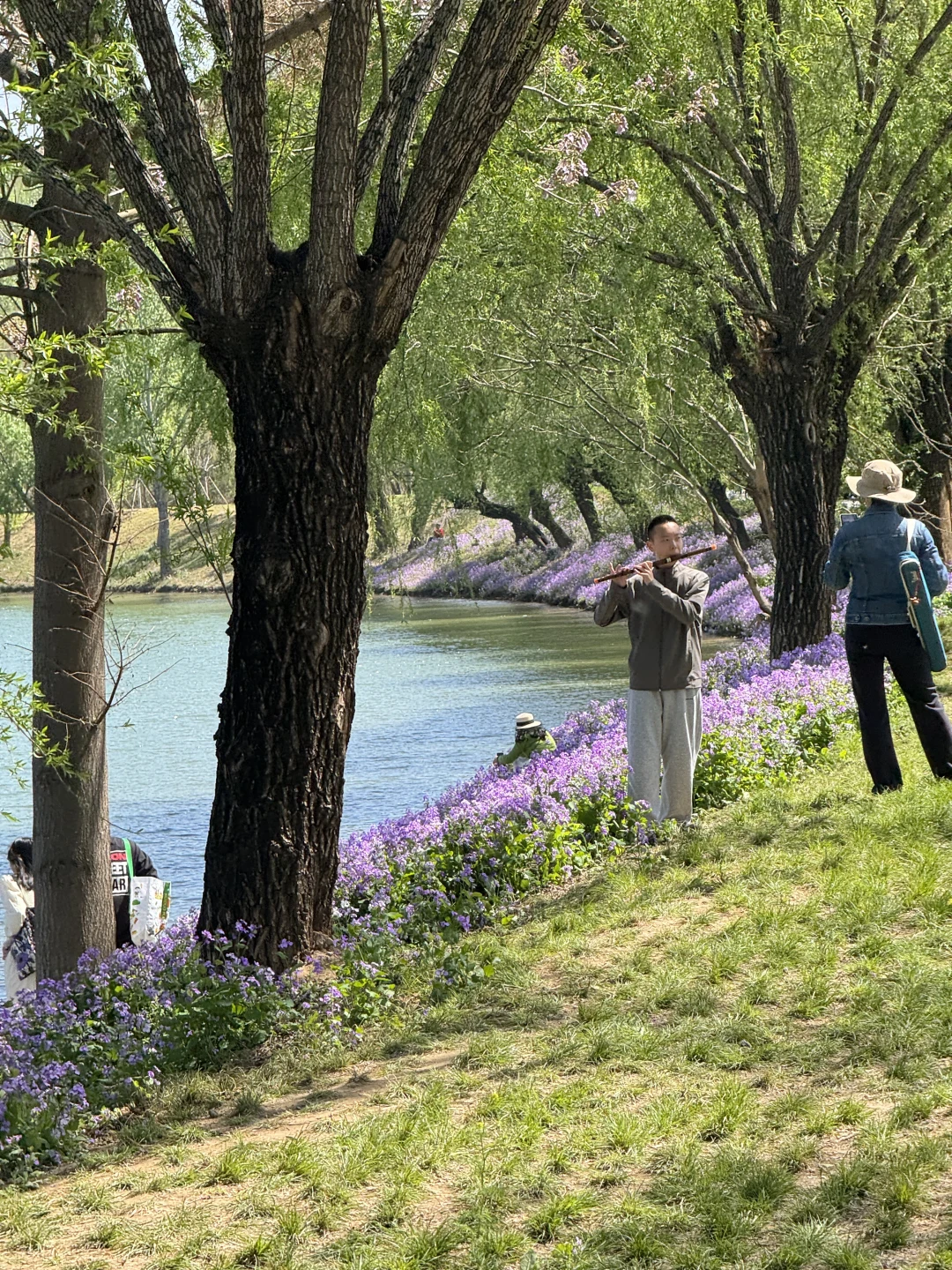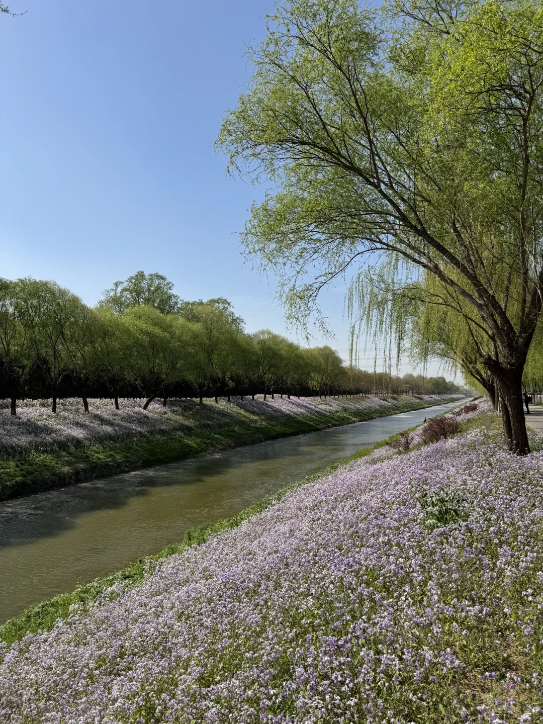 这里的二月兰真的特别特别好看,蓝天白云会更好看,二月兰花期很长,可以等待一个好天气去拍,现在有点柳絮水面会稍微差一点。