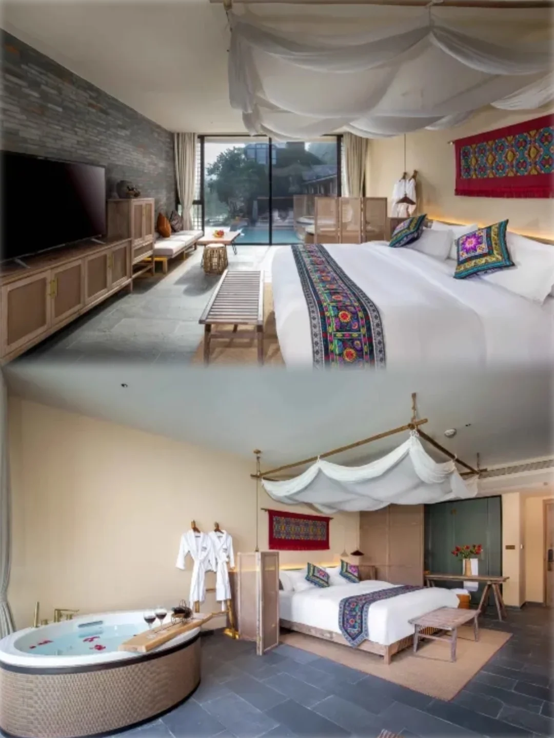 🔸 位置绝了:酒店就在明仕田园景区核心,立于明仕河畔,背靠青山。《花千骨》取景地,推开窗就是喀斯特峰林画卷