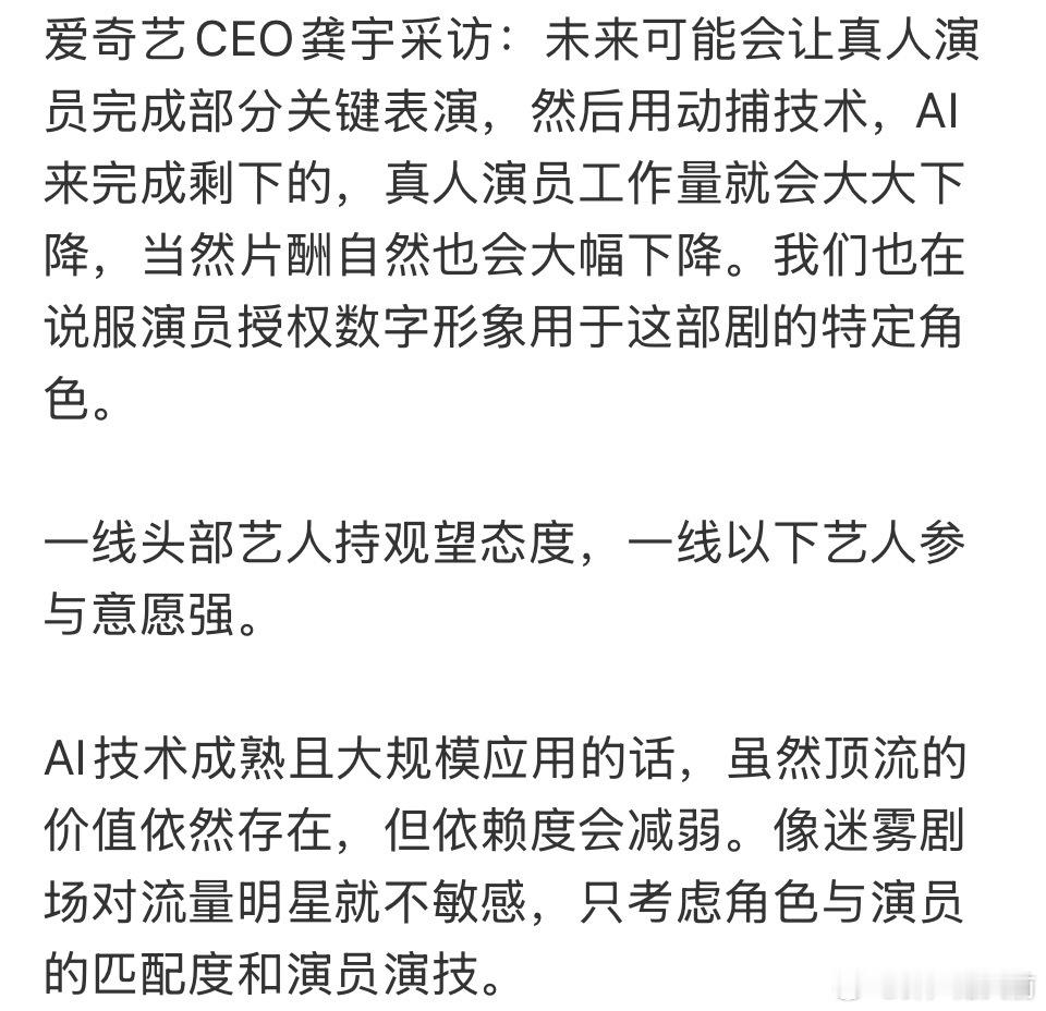 爱奇艺是铁了心要搞AI演员 AI剧了