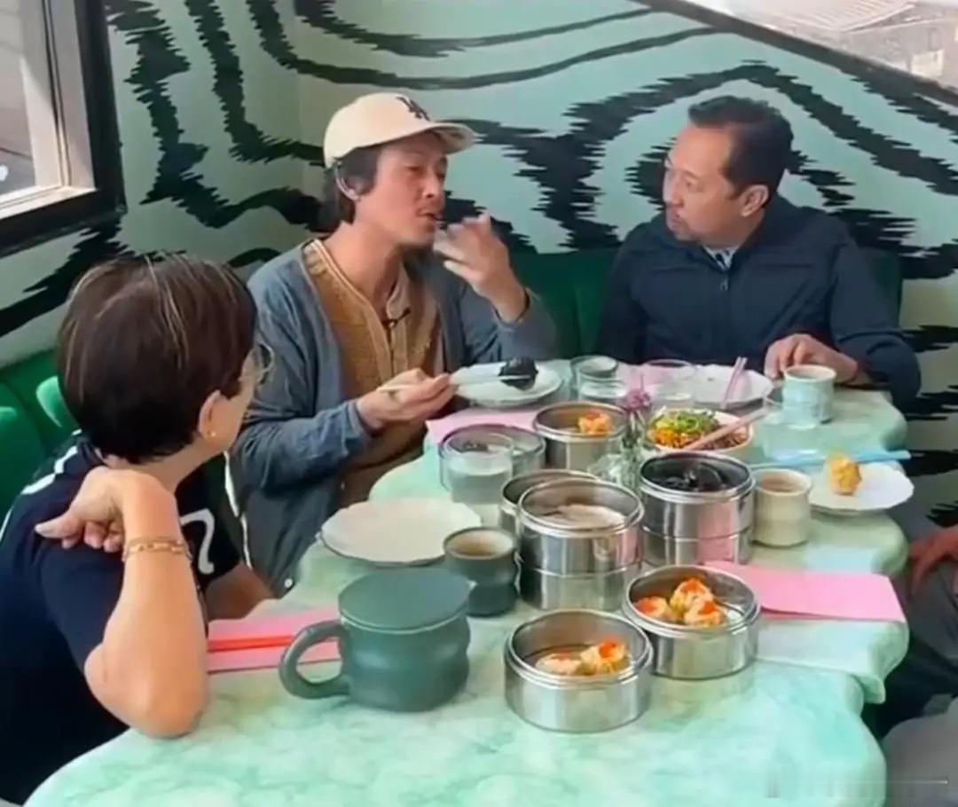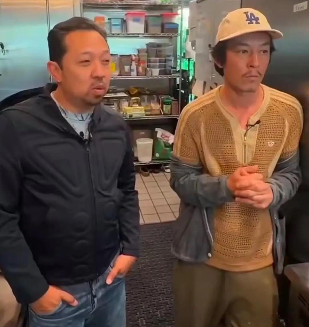 45岁陈冠希在美国一家中餐馆吃饭被偶遇,他的穿着打扮休闲而随性也不修边幅,留着小