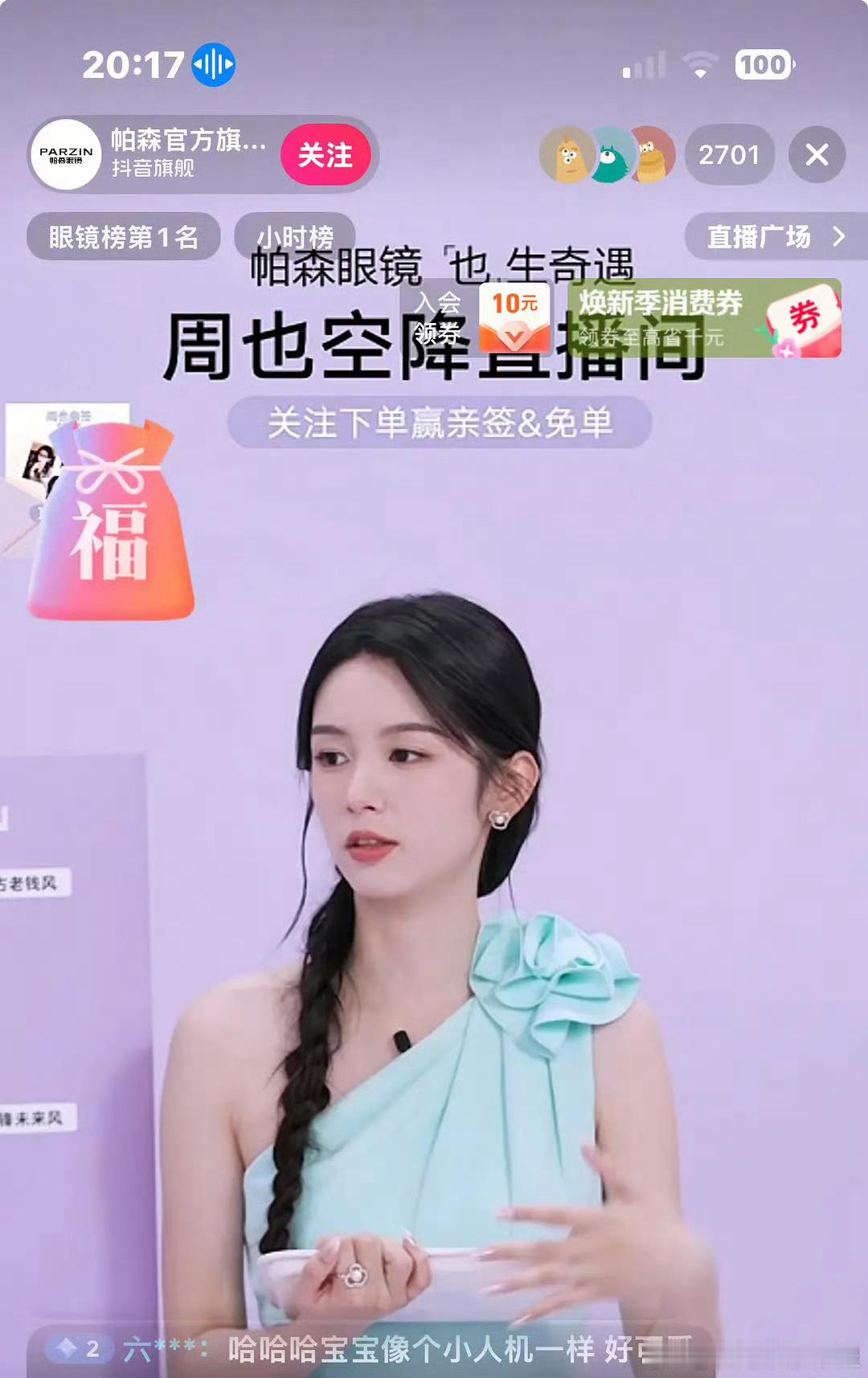 周也今天的直播造型,高智御姐既视感