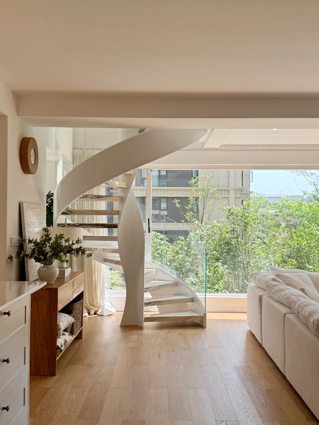 🍃 全屋换白色系统侧压窗,不仅隔音隔热,还能宅家看看树景,真的超治愈~
