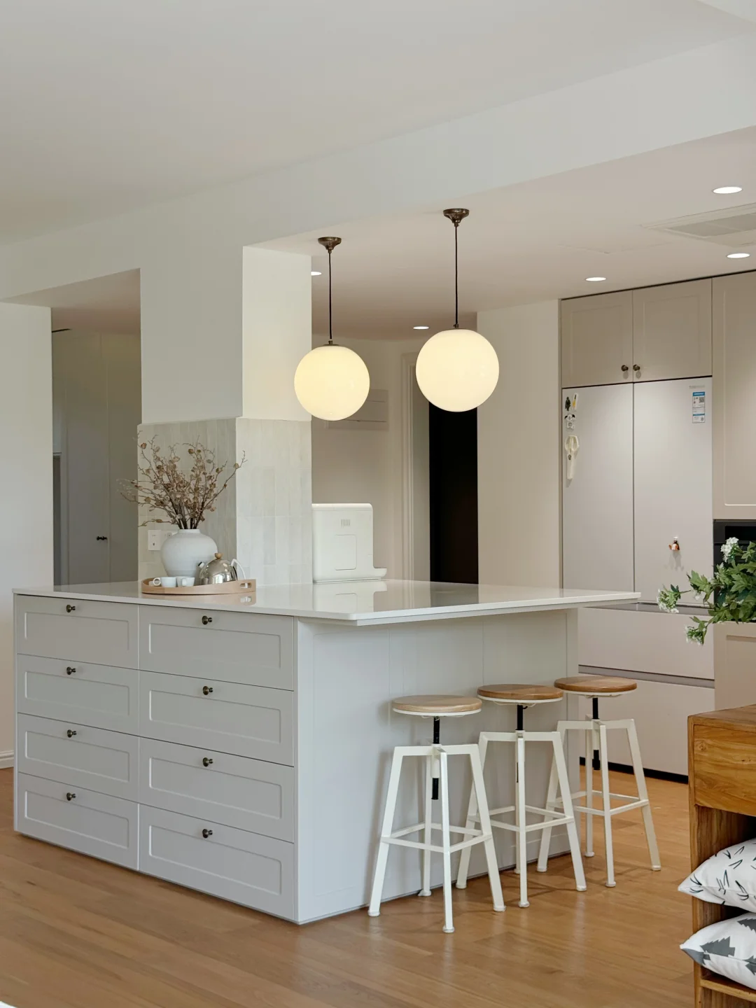 🍃墙面是白色➕米灰色乳胶漆,看着师傅现场调的,所以没有具体色号